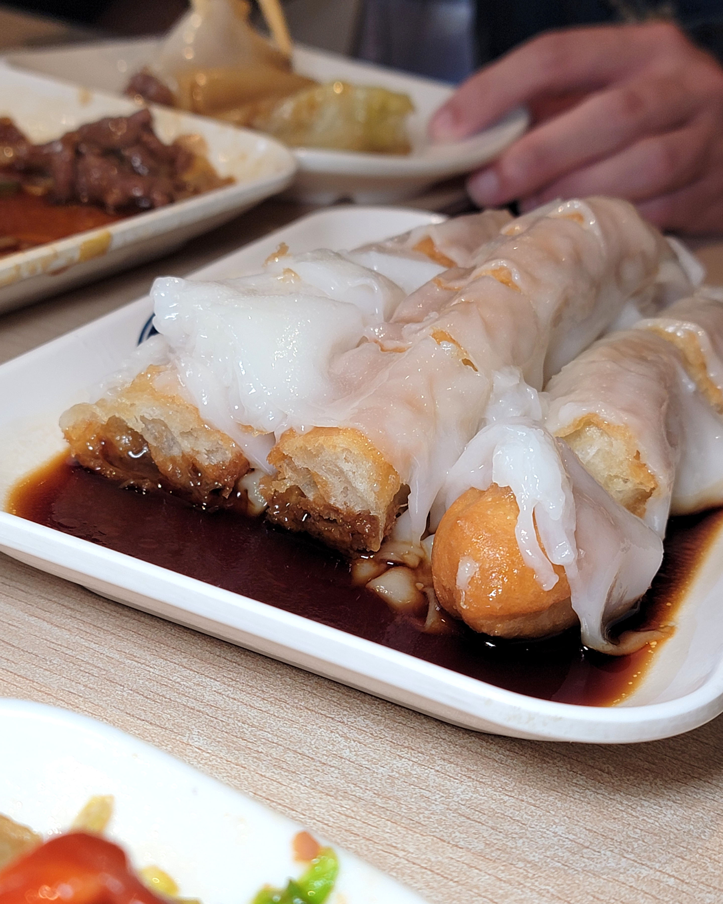 This is where we really got our rice roll fix. We tried five or six different rice rolls, but the clear favorites were the truffle and mushroom, the fried dough, and the special dried shrimp and scallion rolls.