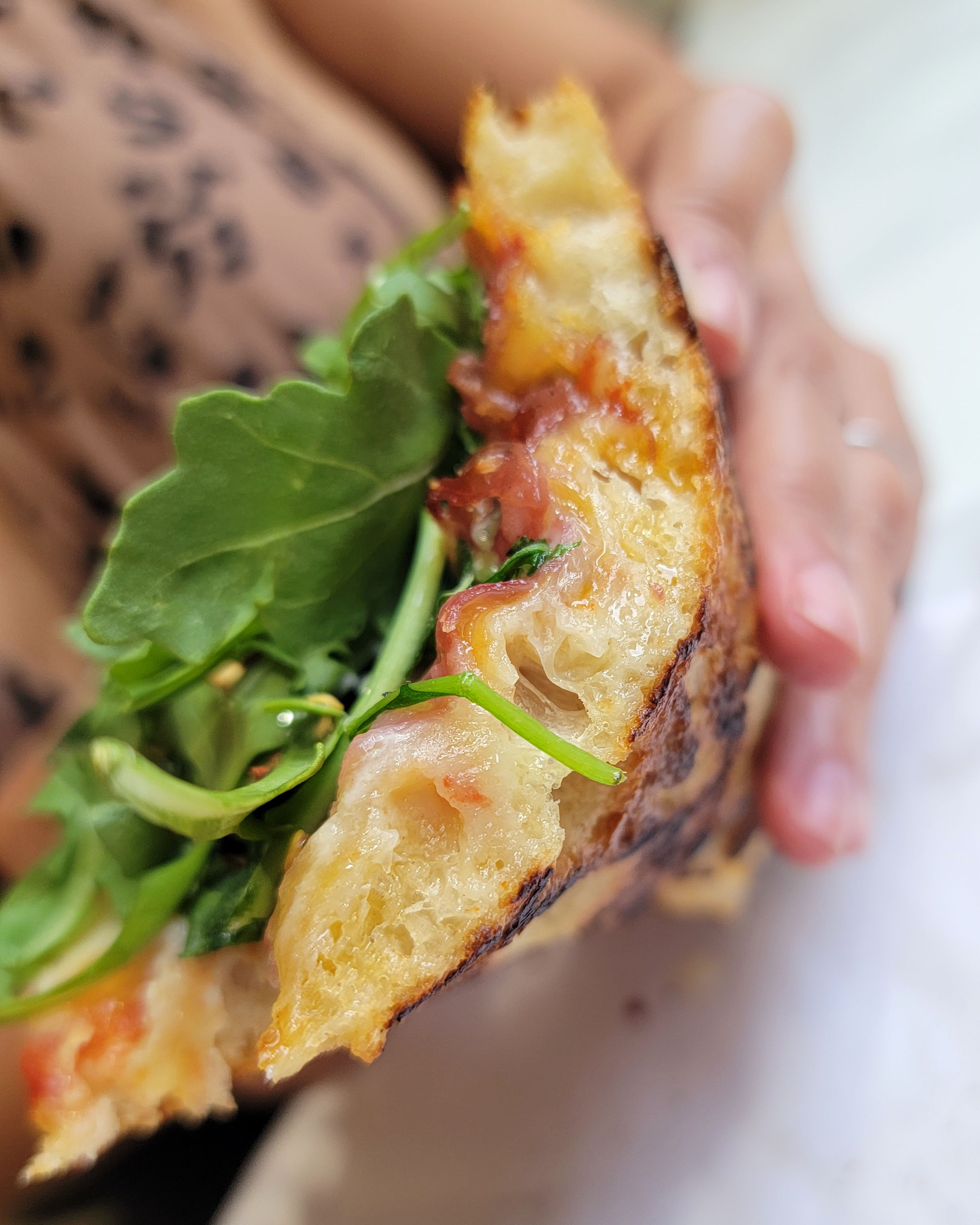 We also tried their fried green tomato sandwich with slaw. I enjoyed this, and the baguette was a really nice surprice here on this sandwich. I expected it to be too hard and rough, but it was warm, soft and really nicely butter-toasted.