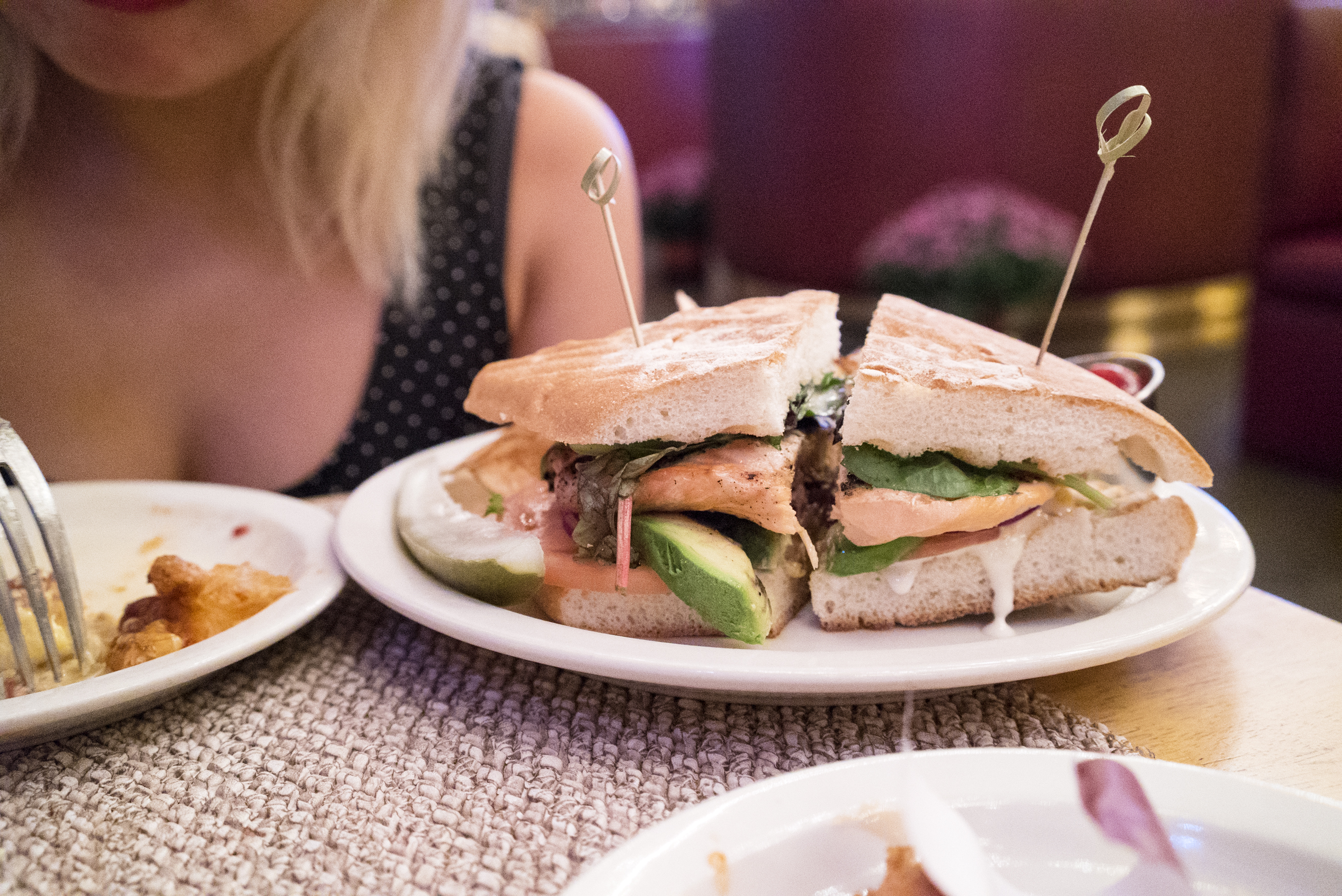 My wife had a salmon sandwich that looked pretty nice as well, topped with lettuce, tomato, onion, and avocado.
