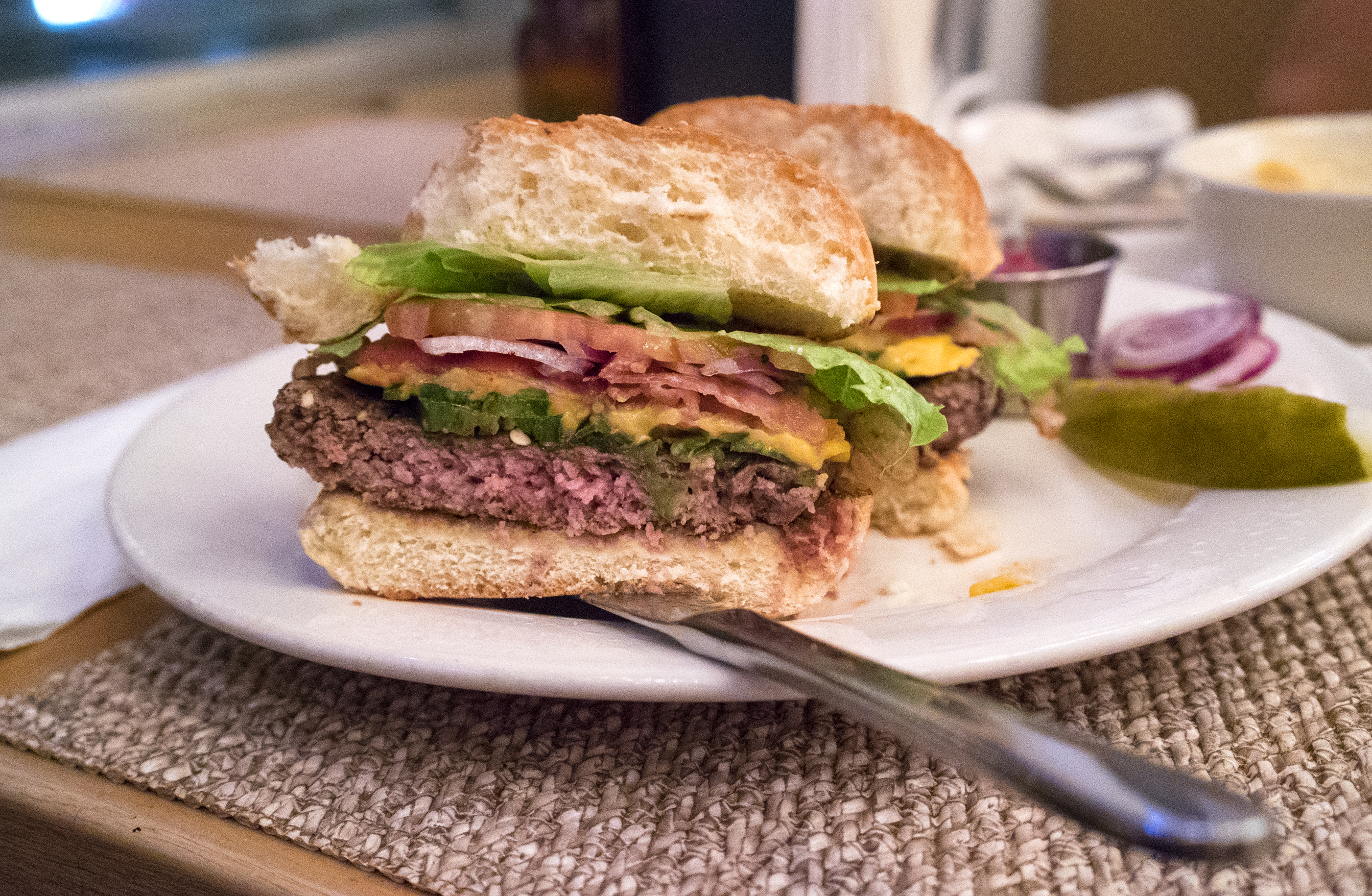 Then the burger came out. I ordered a burger with American cheese, bacon, and jalapeños. My only gripe was that the bun was a little flakey/crusty, but other than that it was well seasoned, they used fresh jalapeños, the bacon was crisp, the cheese was melty and good, and the burger was cooked just right.