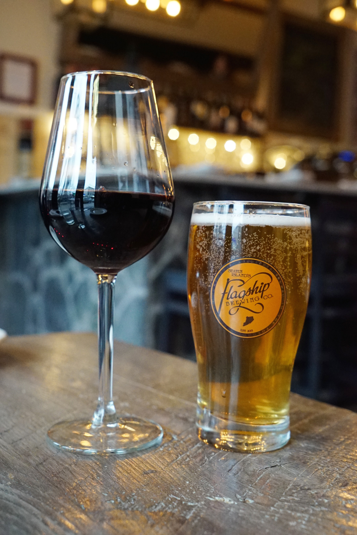 We started with some drinks: a Picus red wine, which was a nice blend of sangiovese and montepulciano. Very smooth. We also had a Staten Island hefeweizen from Flagship. It was the filtered wheat style: good flavor.