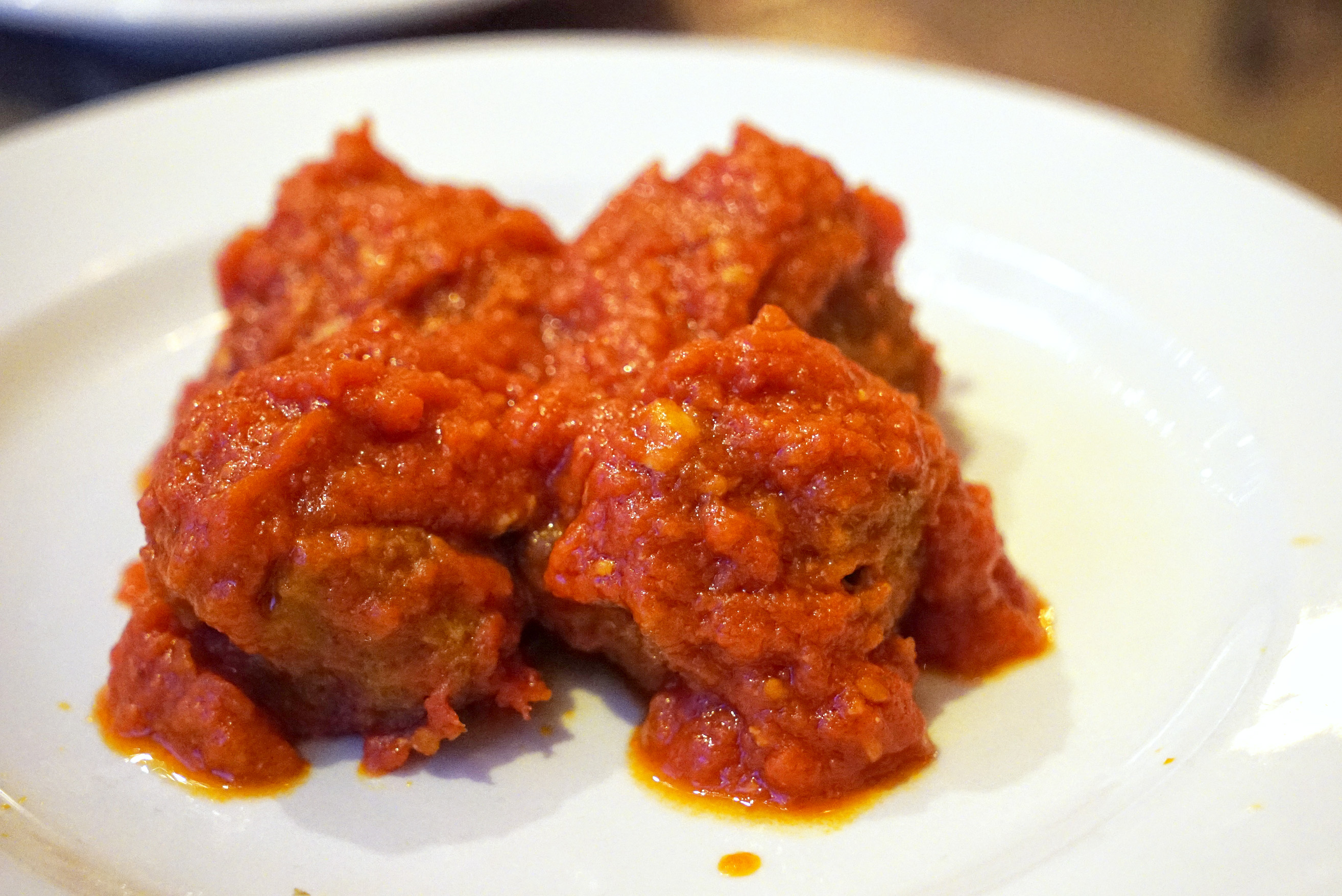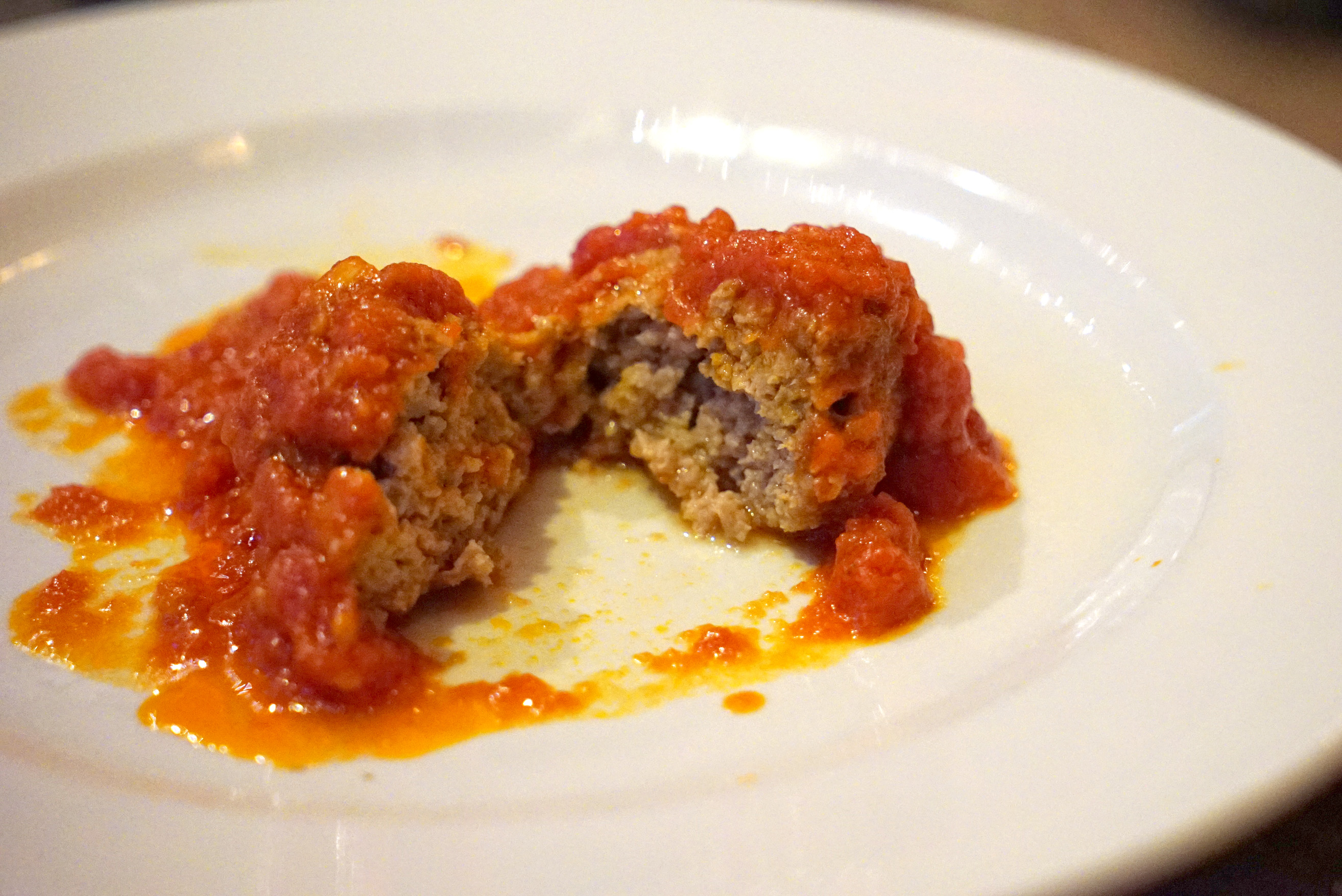 Next up was polpette (meatballs). The sauce was chunky and fresh, nicely seasoned. The balls were very soft, and made from all beef, which I like. Lots of times the pork, veal and beef mixtures can get too dense. I tend to be a picky meatball guy and I really liked these. I still like my mom’s better because she fries them in a pan first to give them a crispy crust before plopping them in the sauce – so you get crispy outside and soft inside.