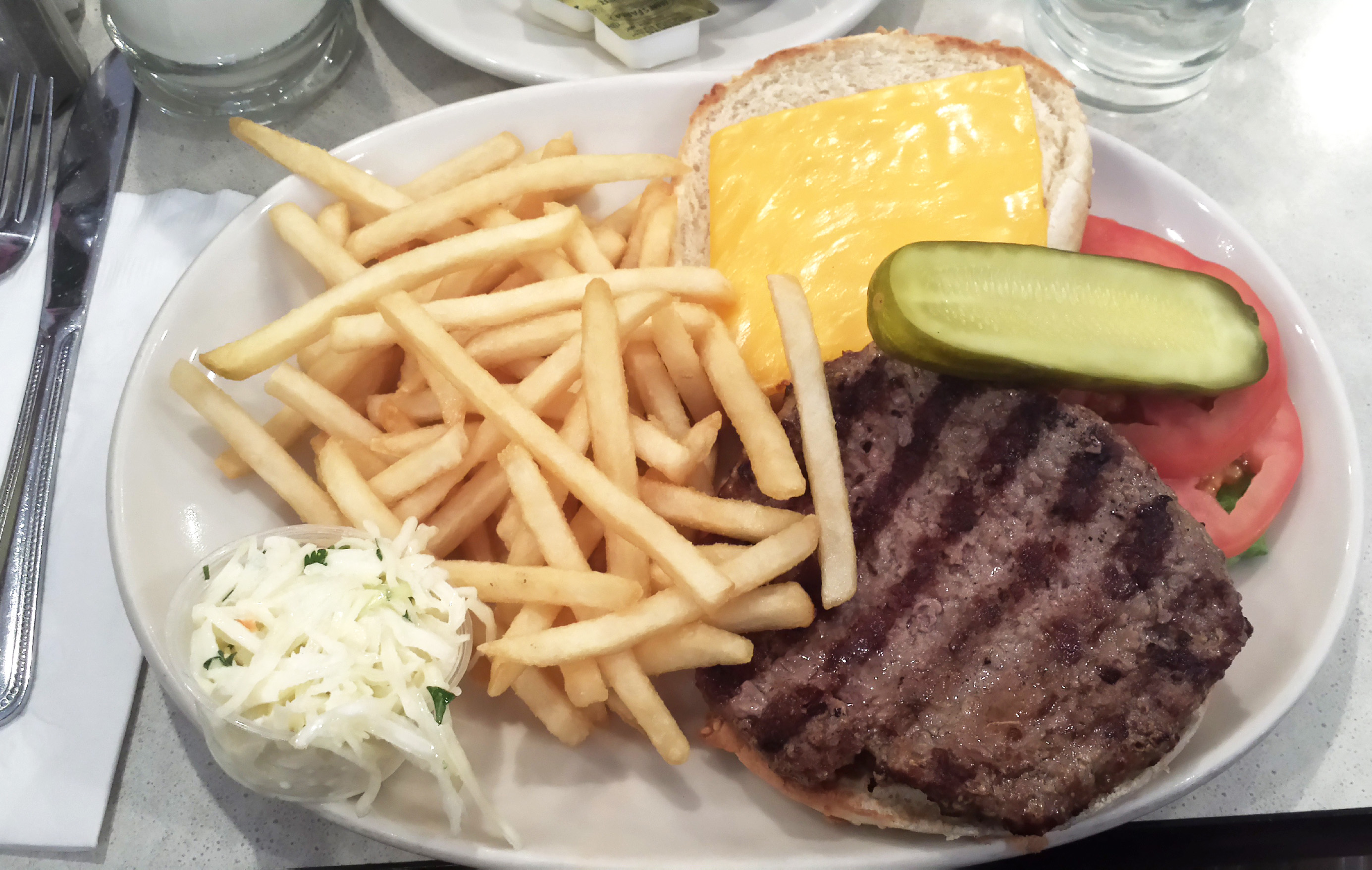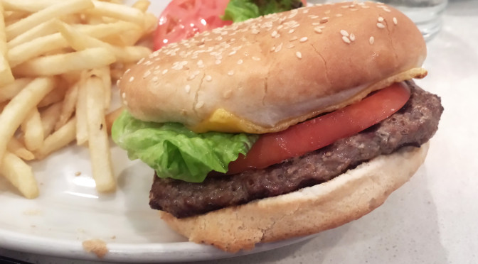 So I finally got back in to try the burger. It’s very basic, nothing too crazy to write about. The bun is toasted, which I hate, and I think the burger patty was probably frozen. But at $9.75 for the deluxe, which comes with battered fries, lettuce and tomato, its not a bad buy.