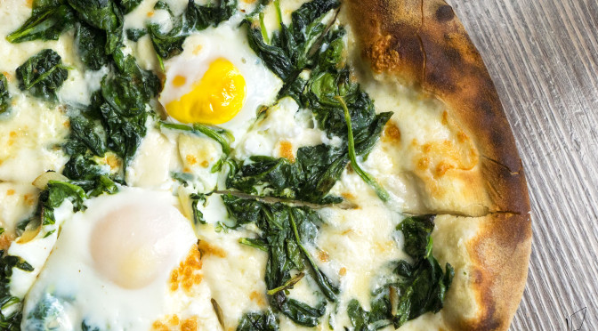 Shakshouka is a baked egg dish from the region, often made with tomatoes. This green version featured creamed spinach, artichoke, fior di latte and white truffle oil. It also comes with homemade pita.