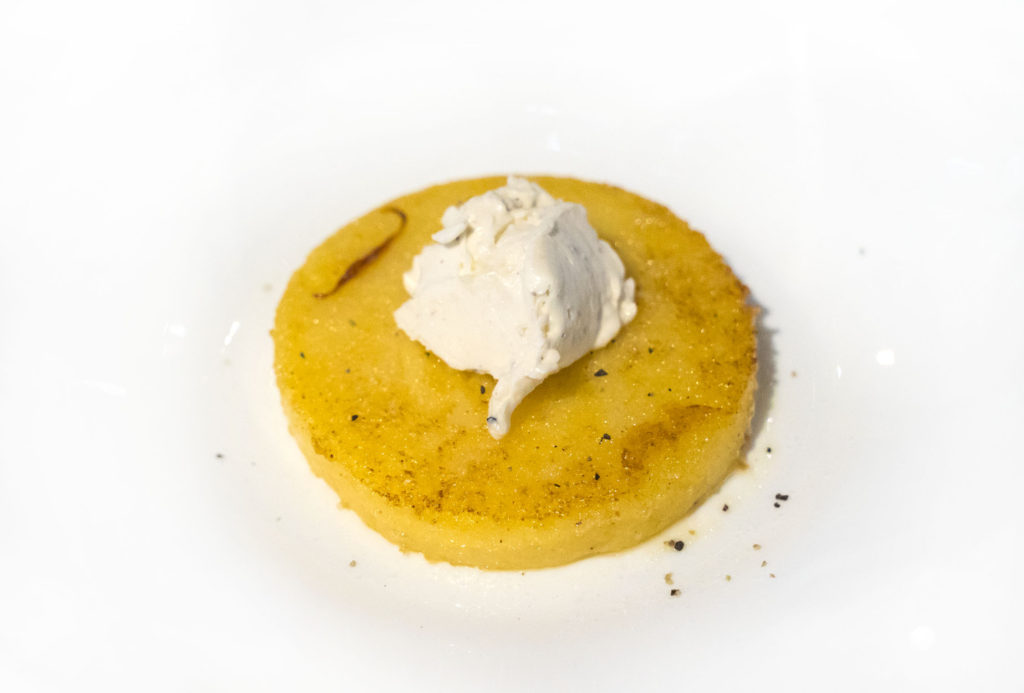 Finally, we tried some truffle cream cheese spread as well. This, too, was plopped onto some sauteed polenta. I can’t imagine how amazing this would be on lox.
