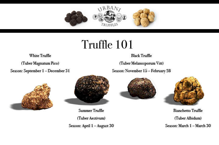 There are (generally) four varieties of truffle: white, black summer, black winter, and bianchetto.