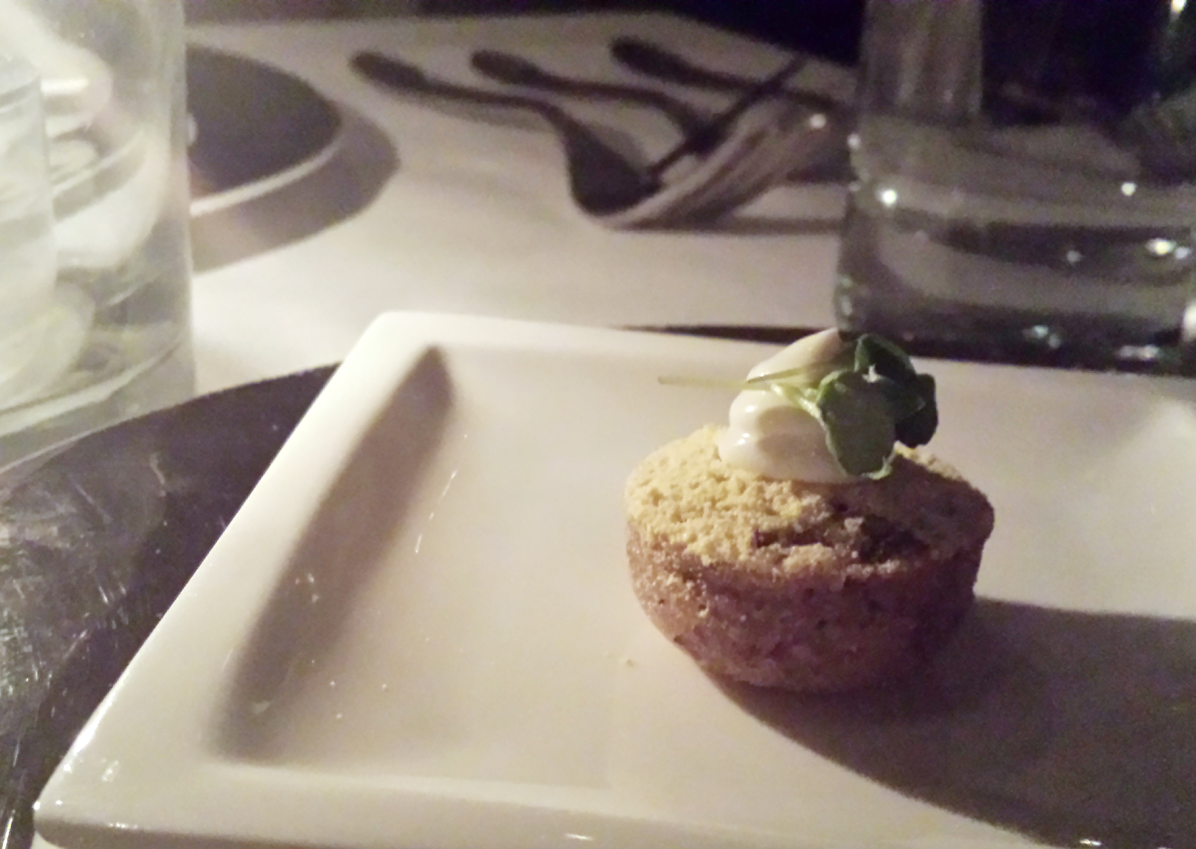 We started with an amuse of sweet corn financier. Or as normal people call it: corn bread. It was a little dry to be honest.