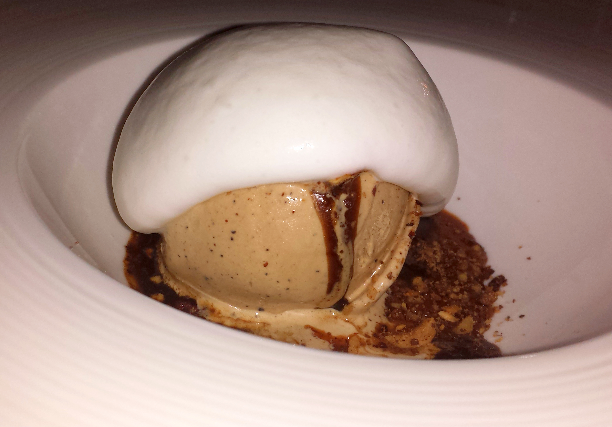 For dessert there was espresso ice cream with milk froth, goat’s milk caramel and hazelnuts. This was a nice, flavorful ice cream. It sort of looked like a mushroom from Super Mario Brothers, which is great, but we were still hungry after finishing the meal.