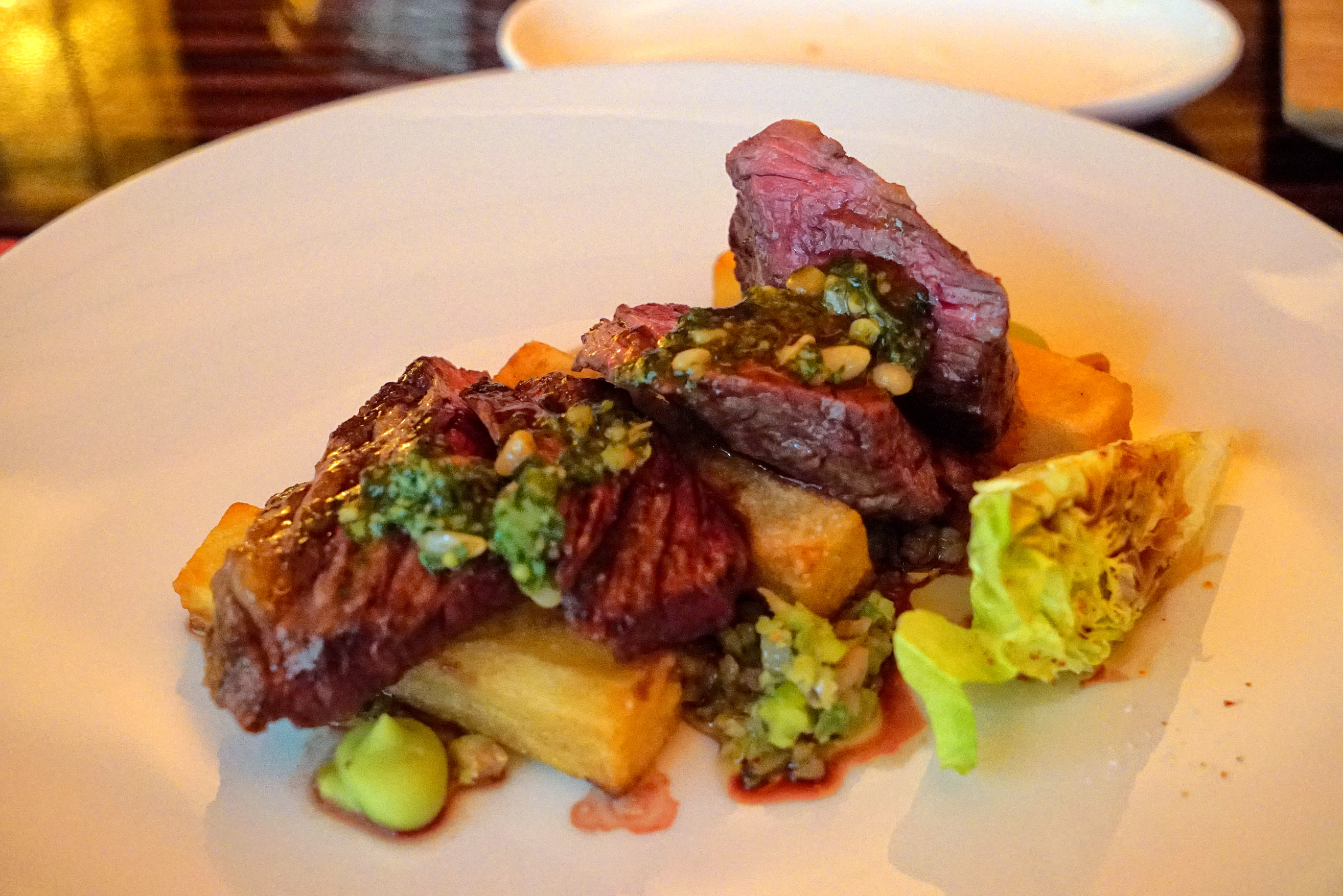 It came with a pine nut chimichurri type sauce on top, and it sat on a bed of lentils and crispy potato logs. There was even a miniature wedge salad on the side, and some pea puree blobs to boot. Really great composed dish here. I highly recommend.