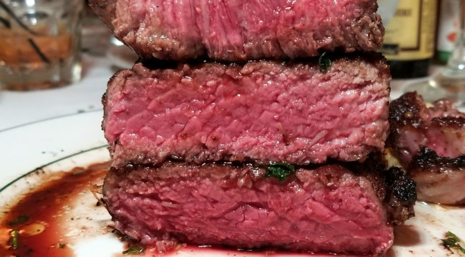 So that’s two steaks down, three to go: filet, strip, and rib eye for two. I’LL BE BACK!