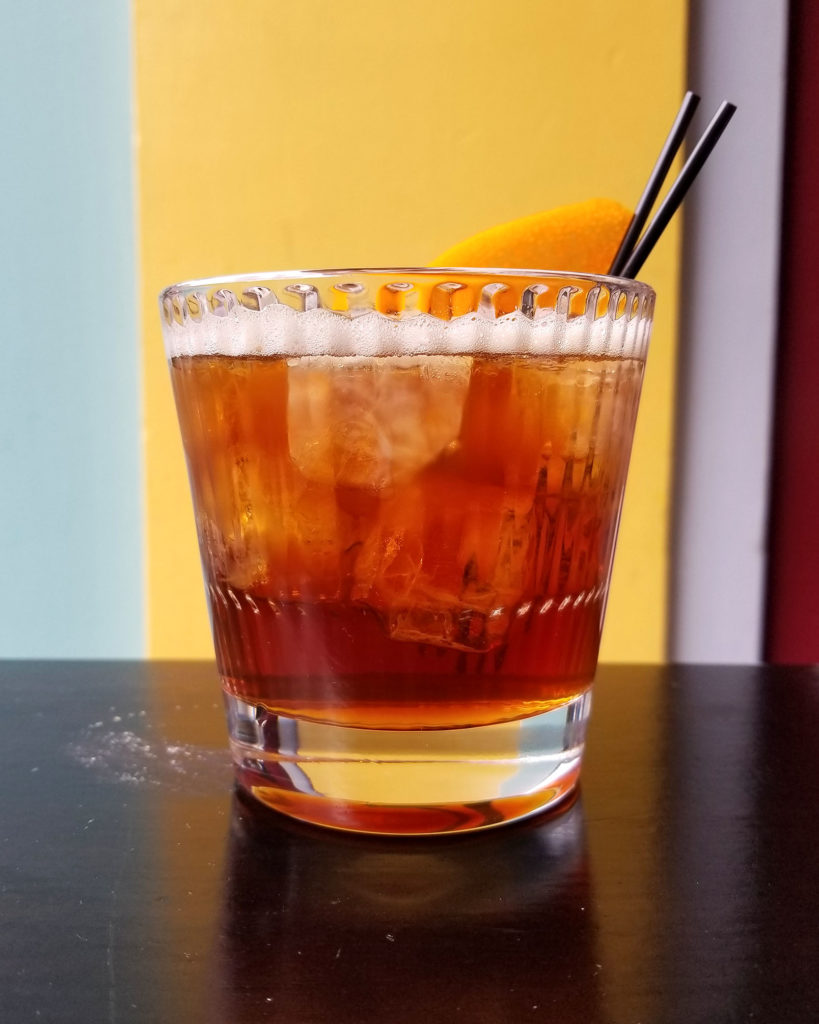 Rum, cachasa, passion fruit, demerara, campari and ginger beer.