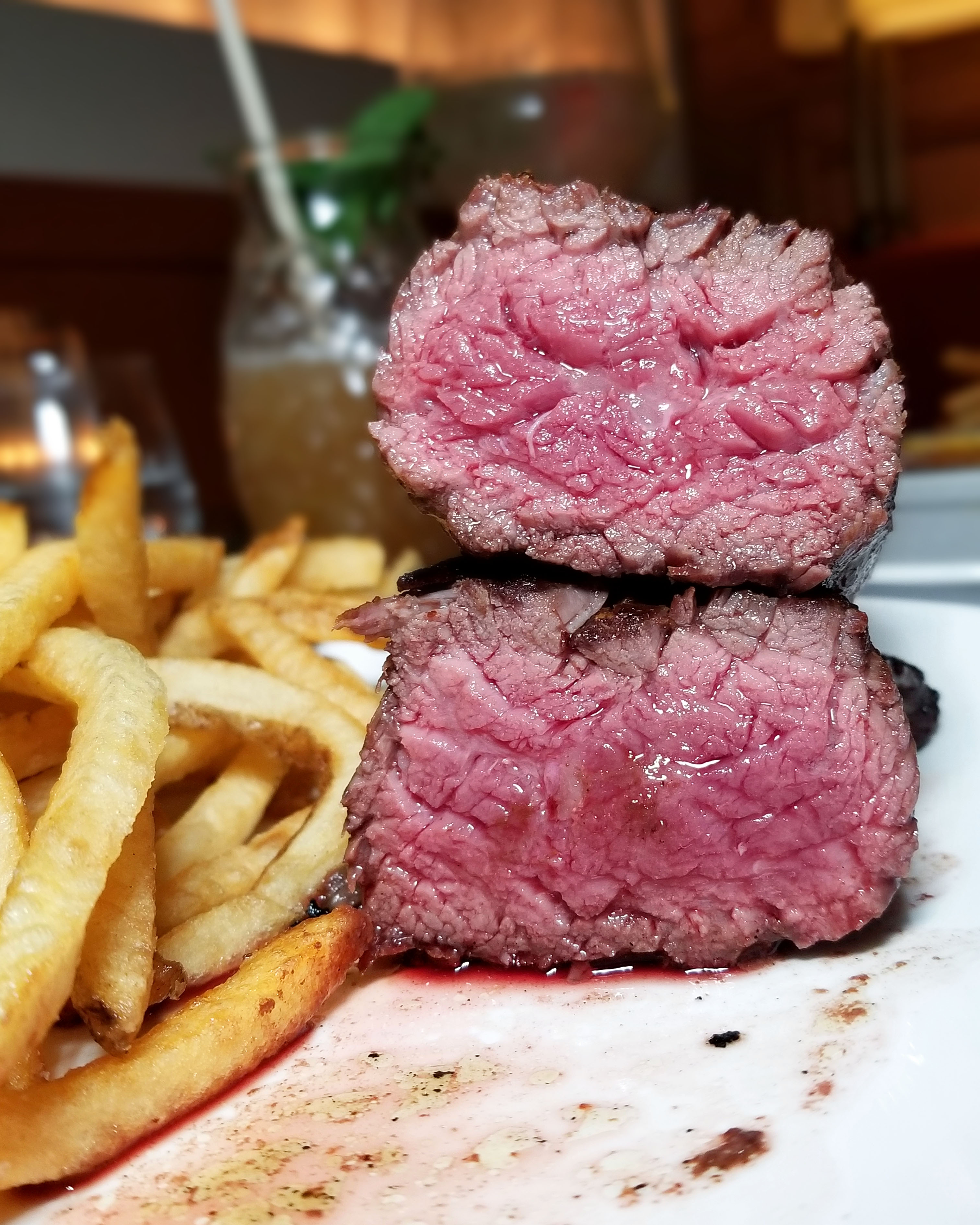 Add the complimentary green peppercorn or bernaise sauce on top and you’re in heaven. Those sauces are great for fry dipping too.