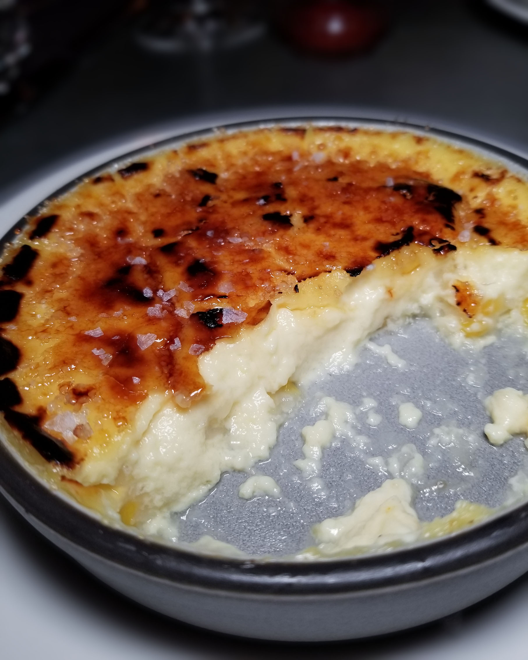 On the side, we gave the corn brûlée another spin, and MAN were we glad that we did. As I expected, with the improvements I outlined above, this dish was a star. Much nicer texture inside (real custard-like), and lighter on the sugar top. PERFECT!