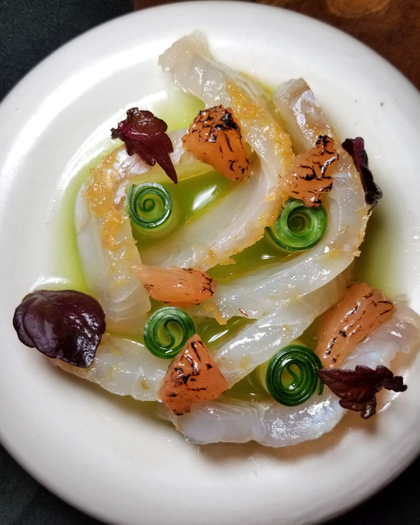 For the appetizers, we went with fries and horseradish aioli, madai crudo and grilled artichokes.