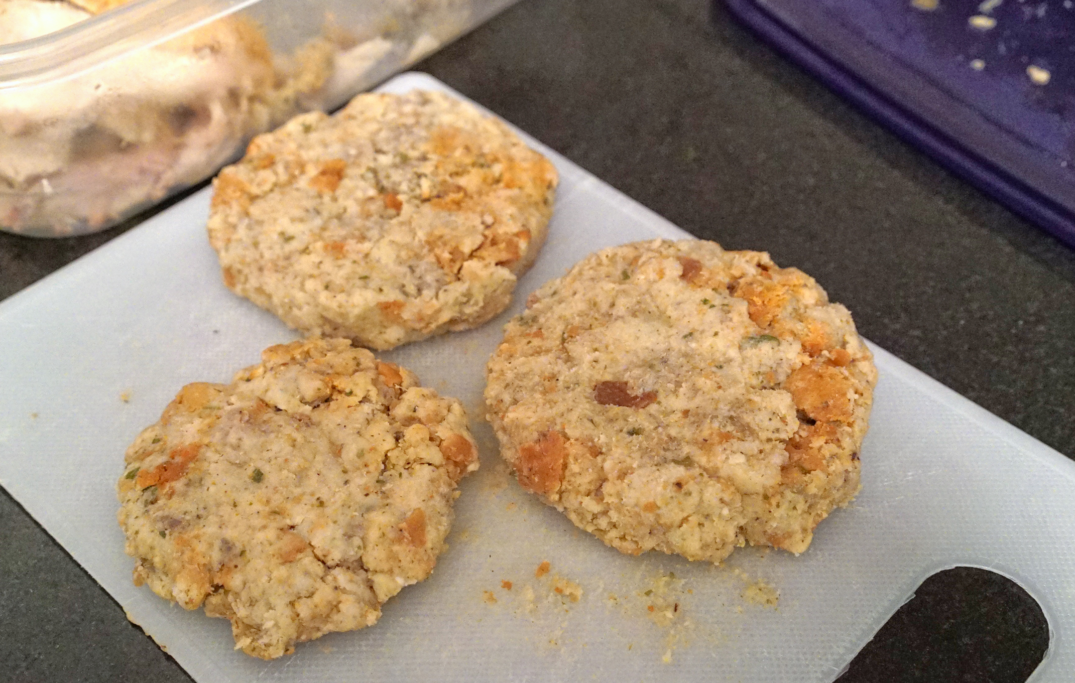 STEP 1: Sculpt your stuffing into burger sized patties. My patties were pretty sweet since my stuffing also had sausage meat already incorporated into it (Momma’s recipe is amazing).