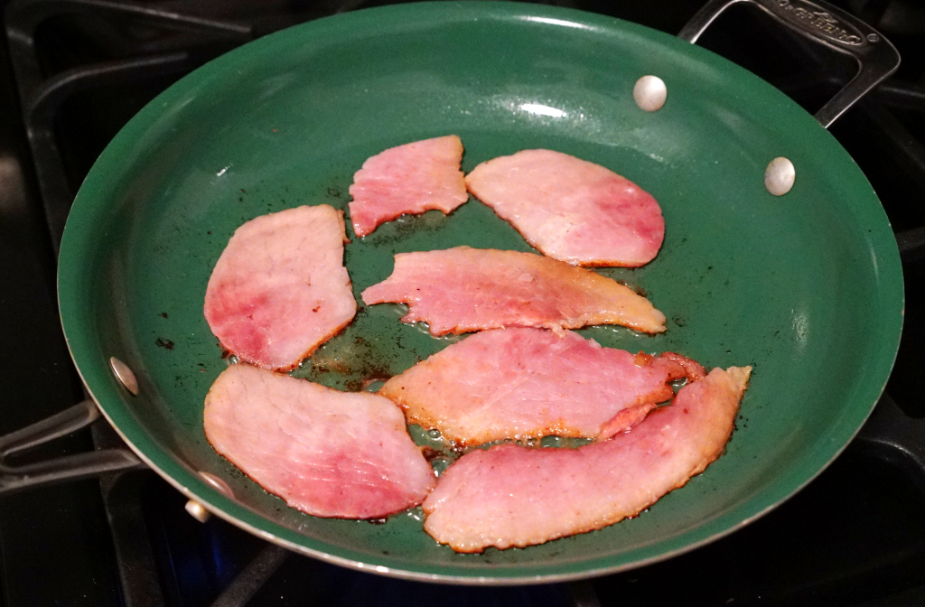 STEP 2: Fry off some ham. Get it nice and brown/crisp on the edges.