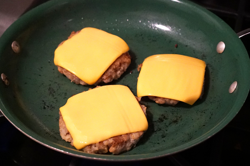 I had no buns in the apartment, but since the burger is primarily made from bread, there’s really no need for a bun anyway. Just fork and knife it.