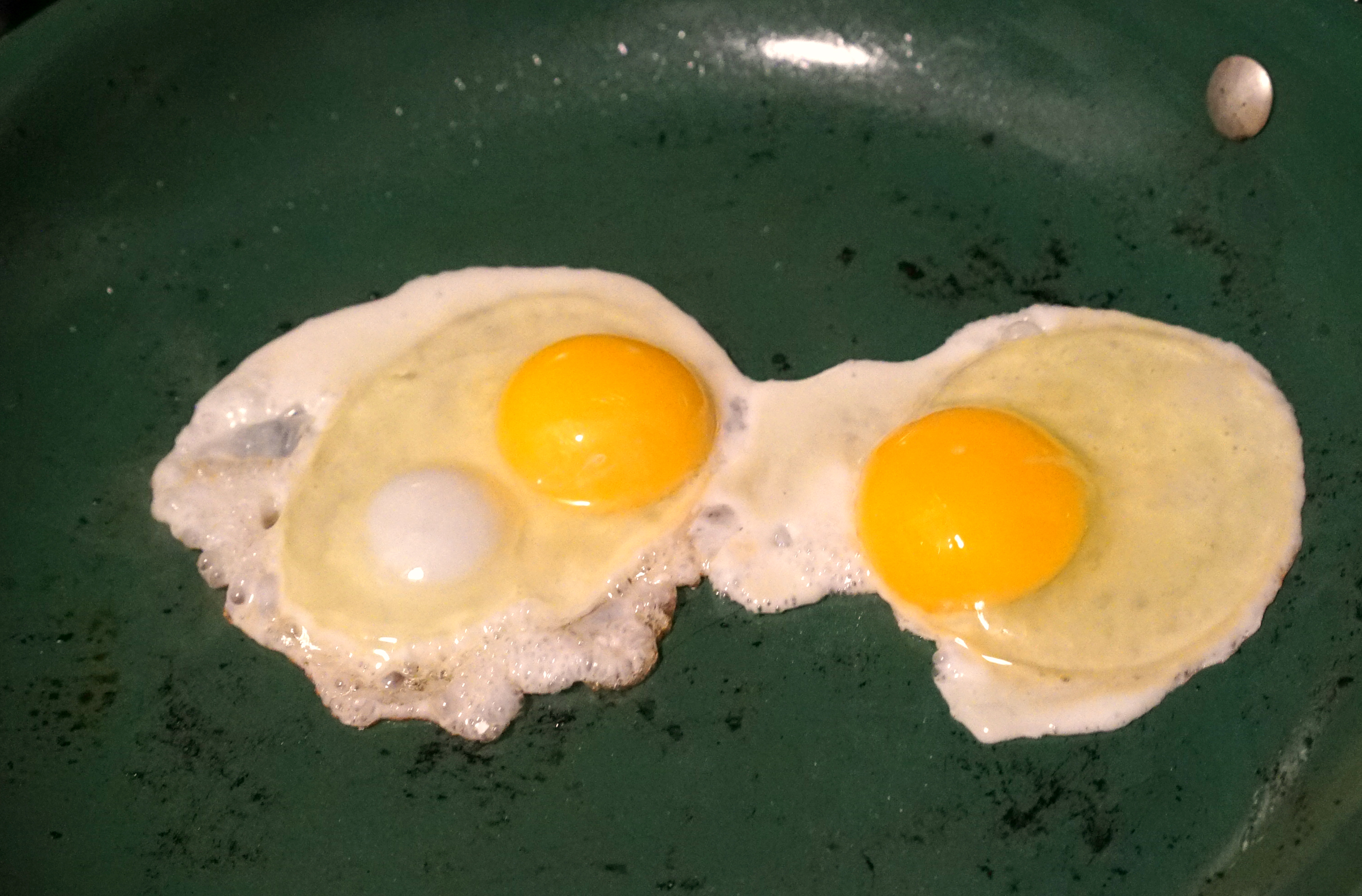 STEP 8: Take the burgers off the pan with a spatula and fry up some eggs for the top.