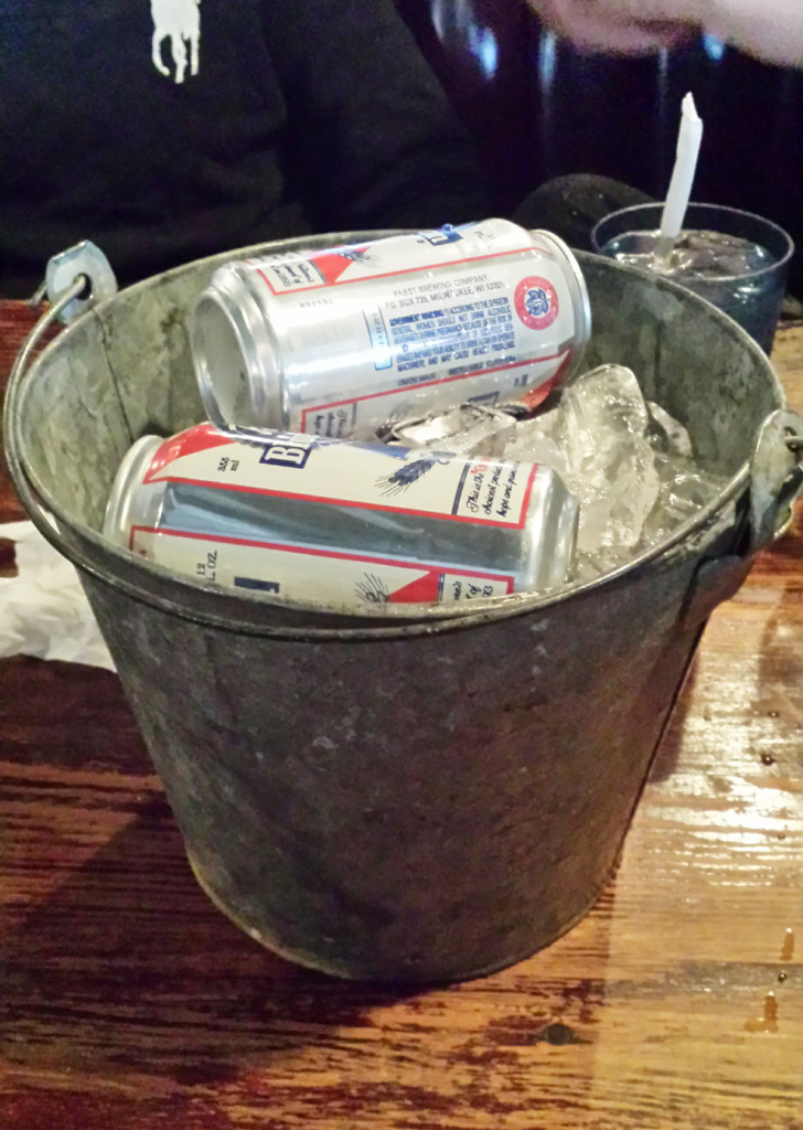 Me and two buddies went with the bucket of cheap shit: six hipster beers for $16.