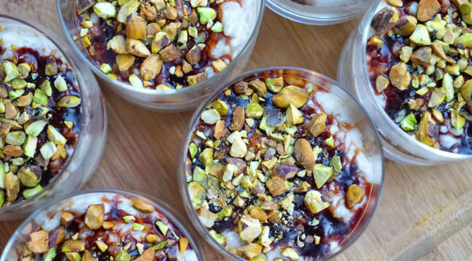 Dessert was a cardamom spiced rice pudding, topped with toasted pistachios and a pomegranate-cherry reduction.