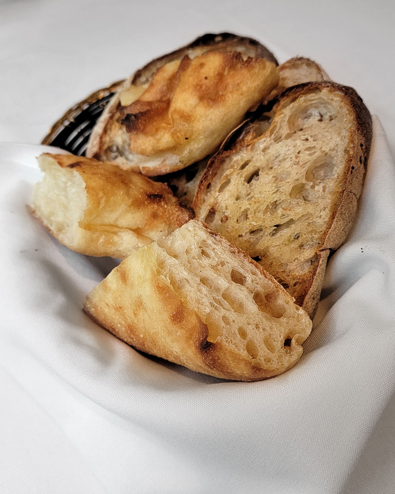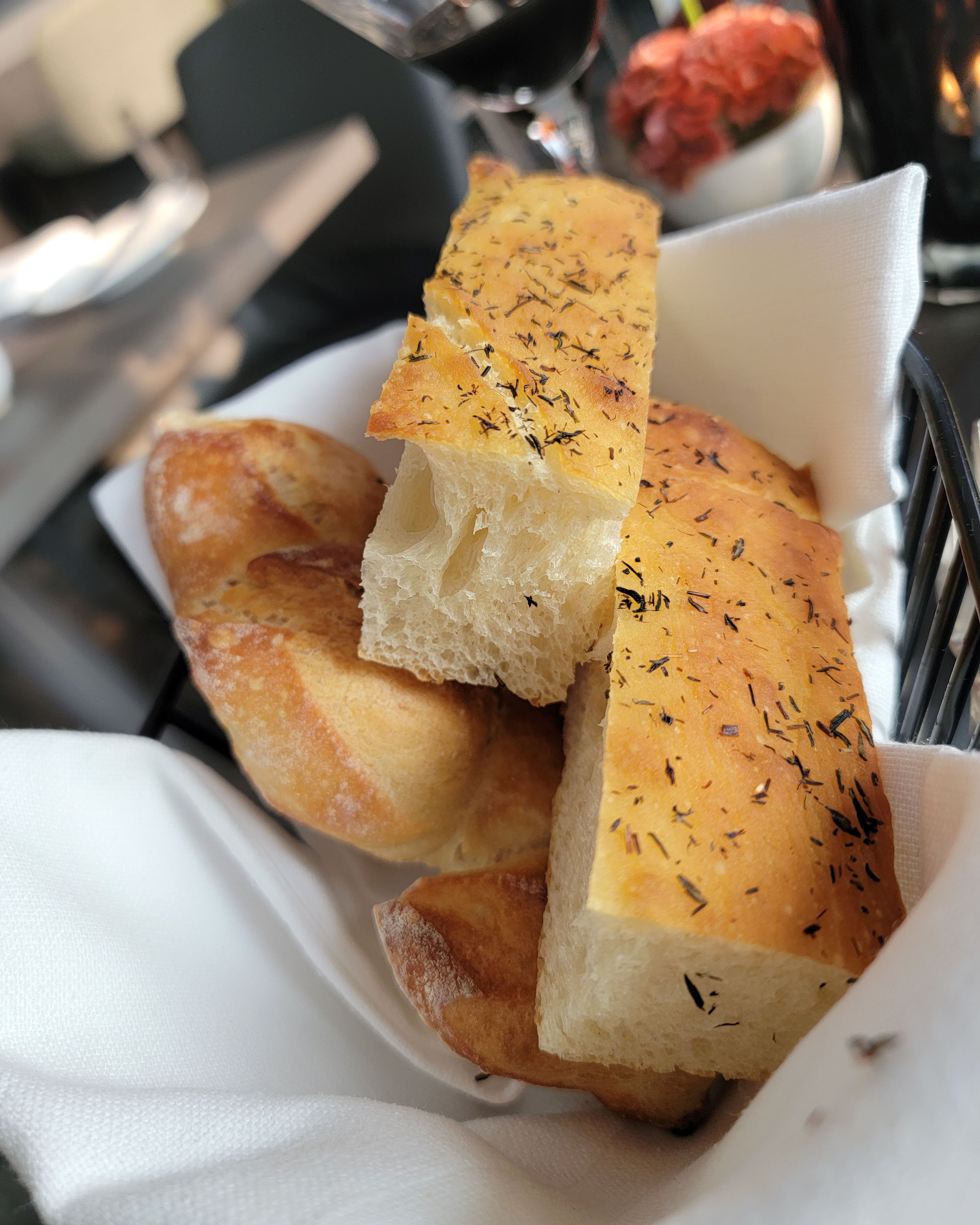 Table bread was a nice focaccia (cold), and there was also a nice plate of olives, cheese and tapenade.
