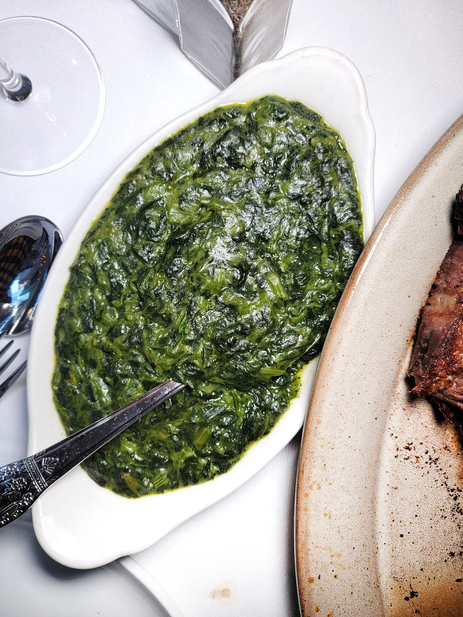 We tried the garlic sauteed spinach and the fries on the side. Both were good, but the fries stole the show here for me. We did not try any desserts (just coffee).