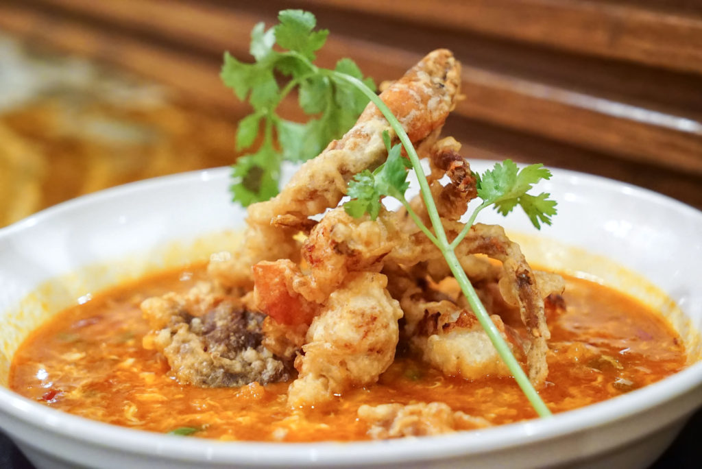 Amazing spicy fried soft shell crab soup: a lot of depth.
