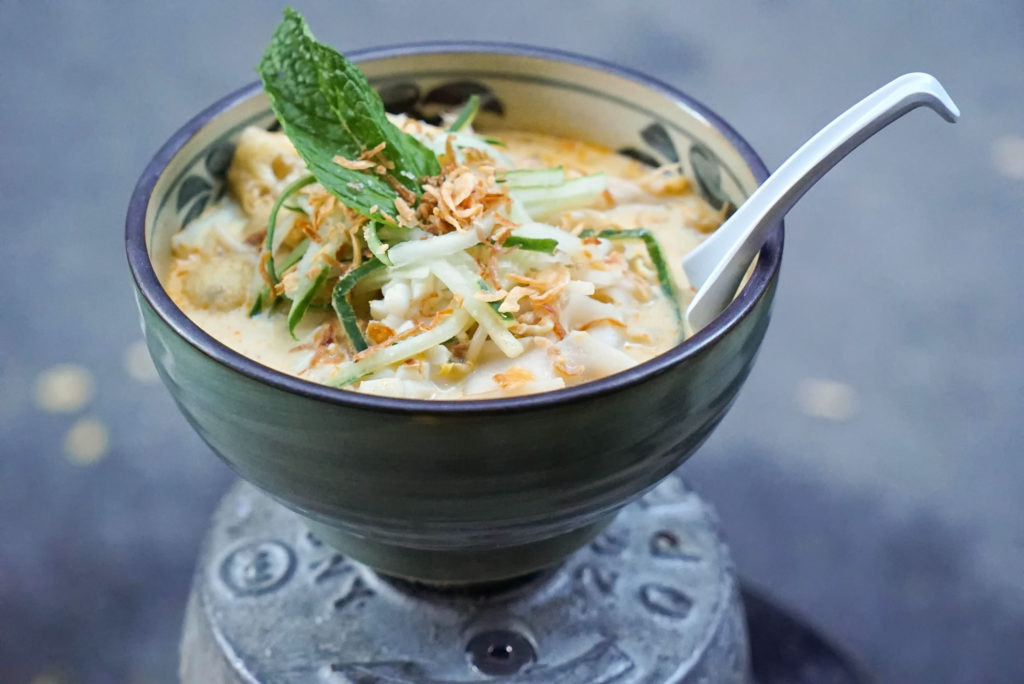 Flavors common to Burmese cuisine that feature coconut milk in the broth base (Tabata):