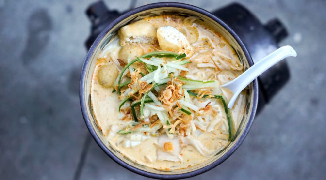 The tangy bun bo hue broth was contrasted with the milky-white, creamy laksa broth.