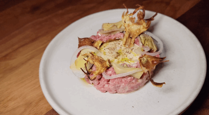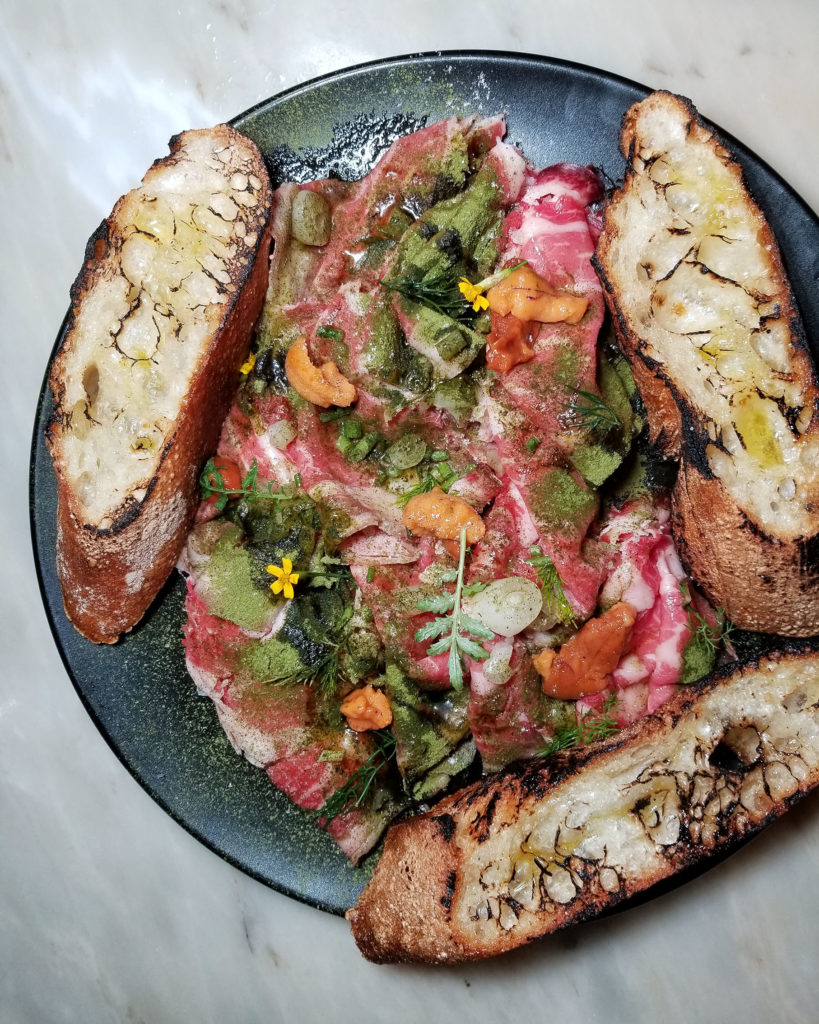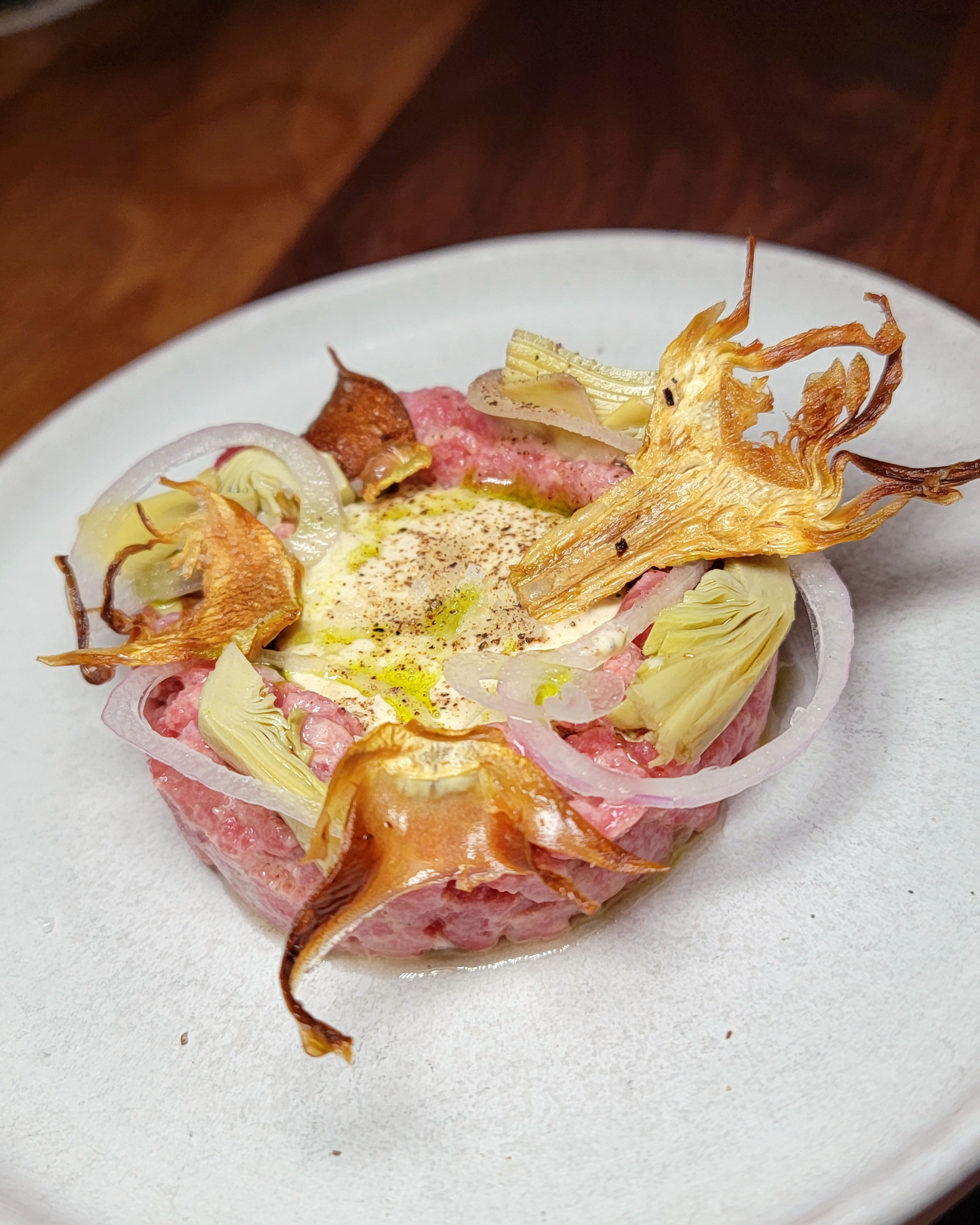 This was probably one of the best tartare dishes I’ve ever had. It came with crispy fried artichoke, fried shallot and ramp oil.