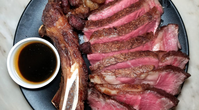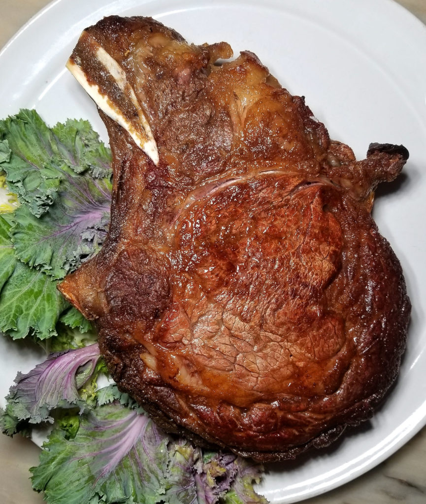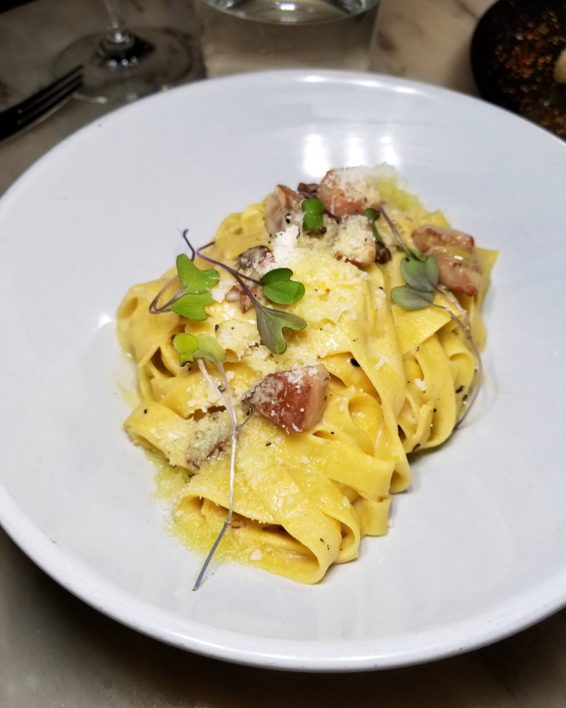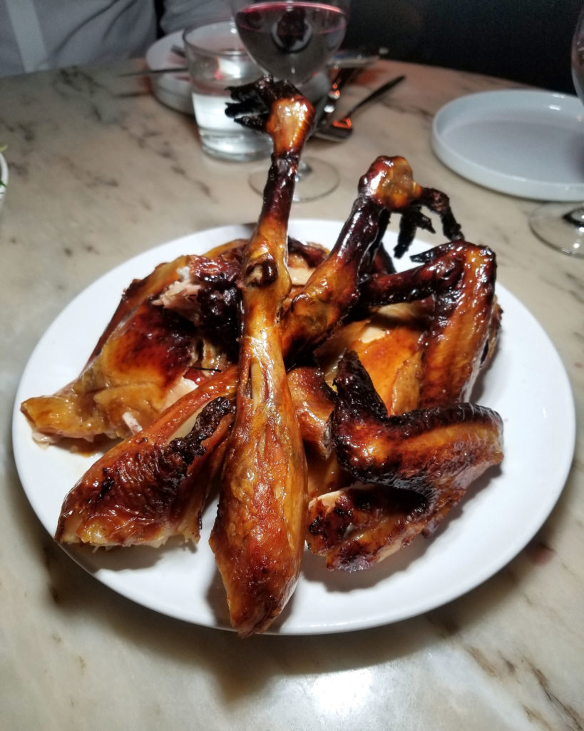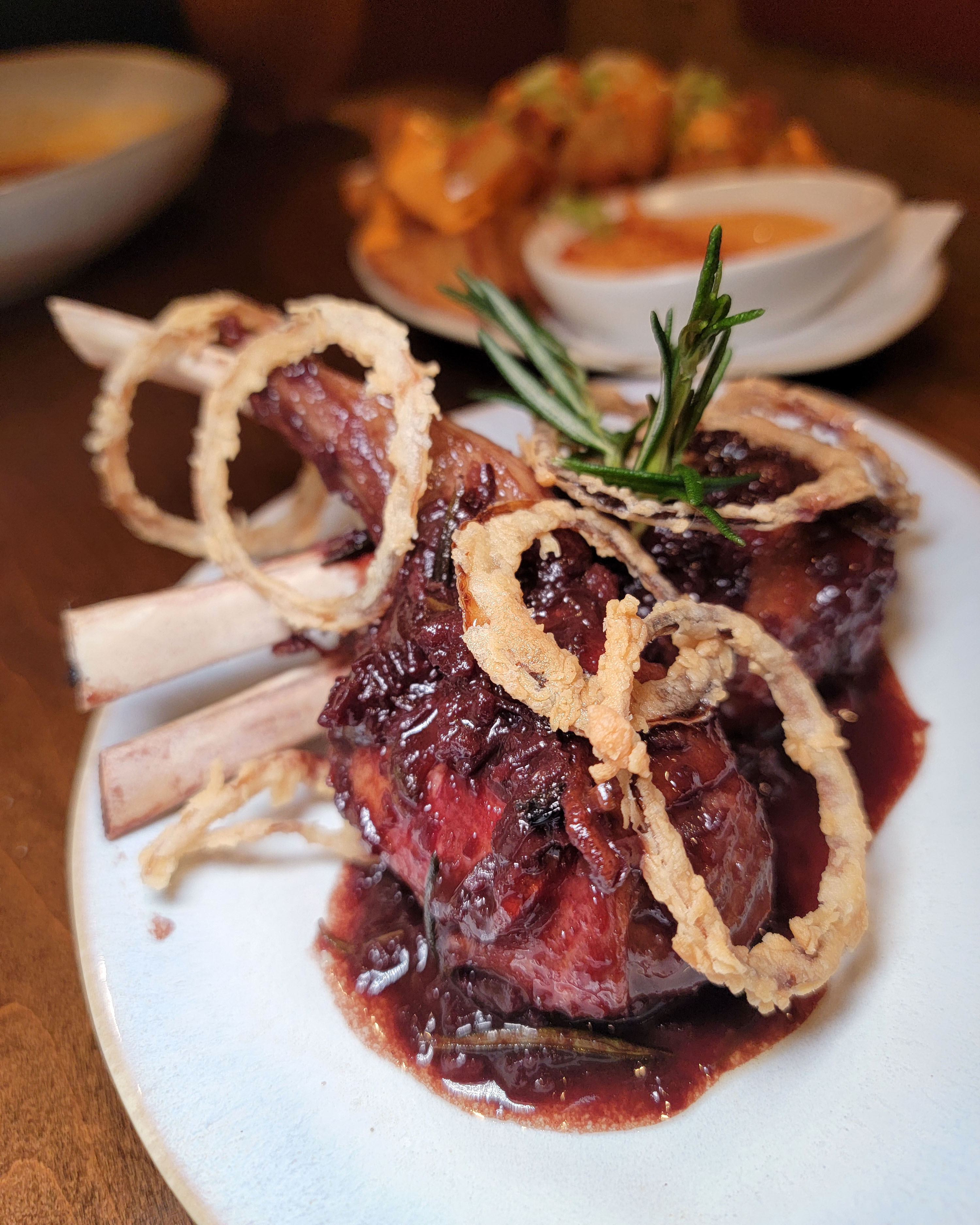 At first I thought maybe it was a tri-tip based on the shape, but the muscle striations seem to go the wrong direction for that. Based on the muscle fibers, I think this is in the sirloin family. Perhaps top butt/sirloin, or top sirloin. Either way it was perfectly cooked, had a great crust, and was artfully topped with a maitre’d butter and herbs. At $69 this is also a great deal for people to try the best of what can be on an otherwise under-utilized cut. 8/10.