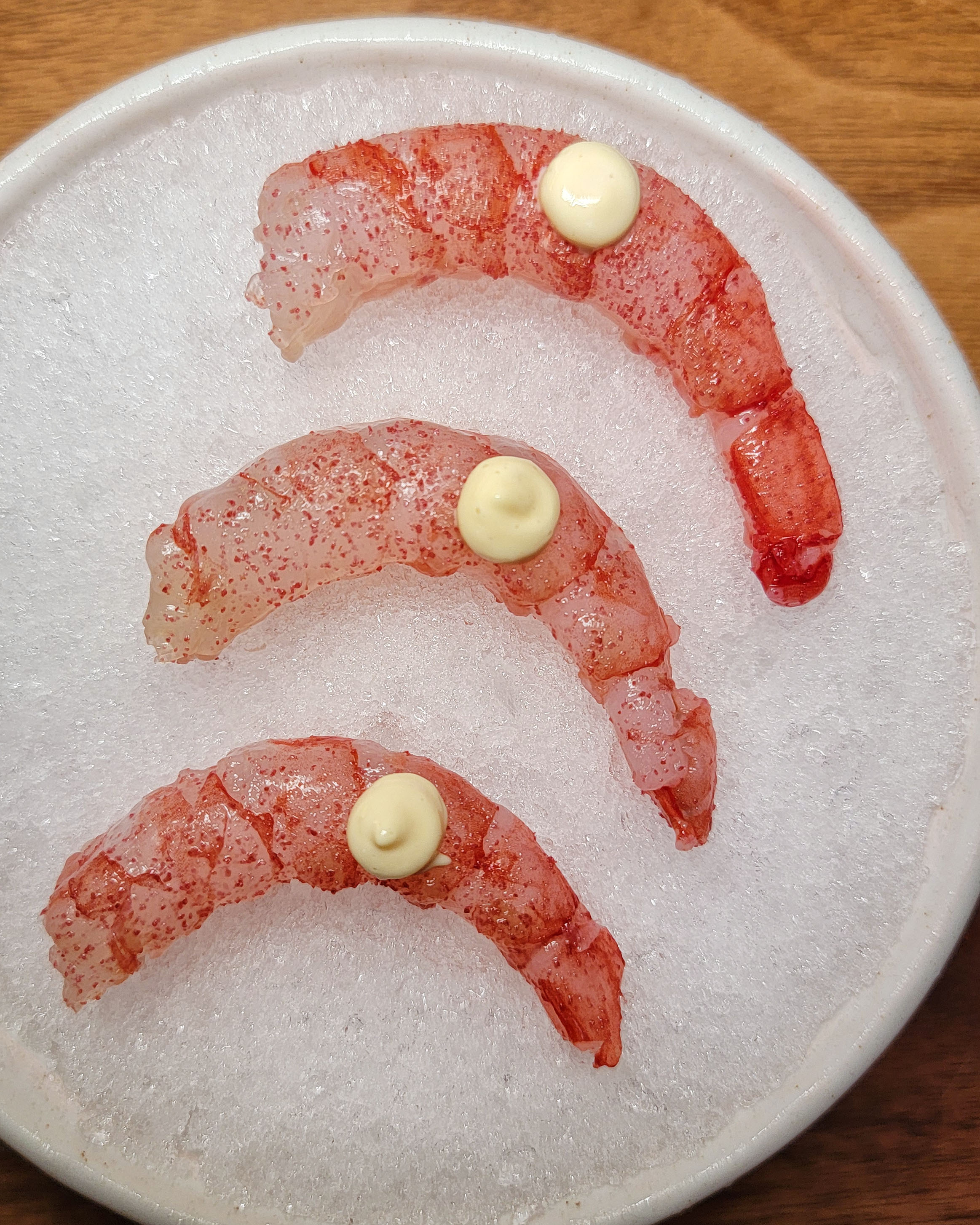 These beauties are served raw over ice and dusted with umeboshi (dried pickled plum). I really liked these.