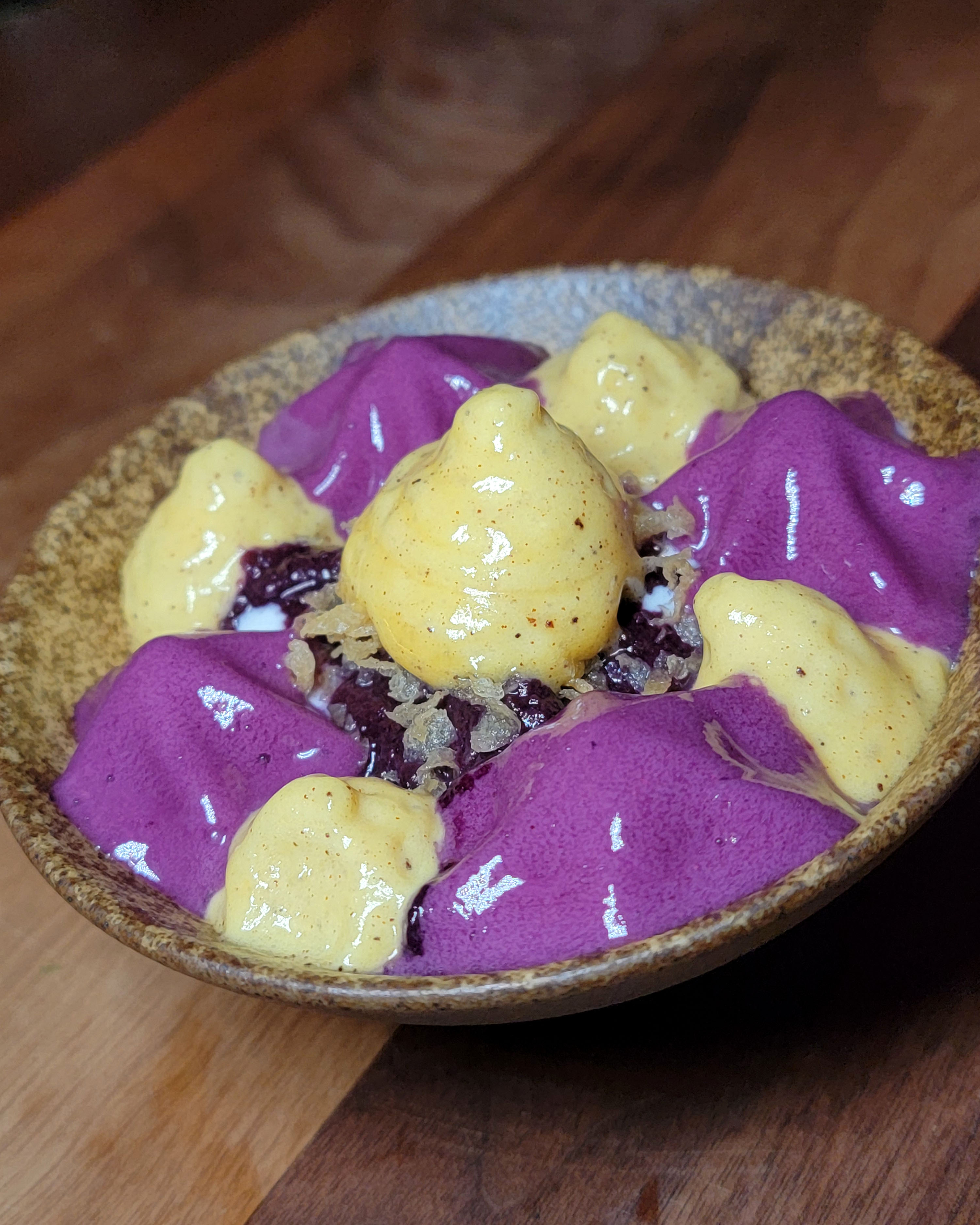 Totally unique. I could taste the potato knowing that it was made from that. but otherwise I might not have. It was not too sweet, which I really appreciated. This was also served with blueberries.