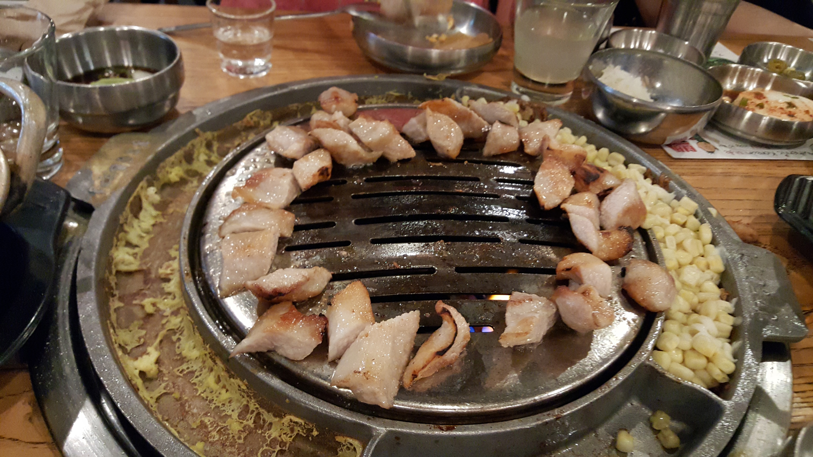 The grill even had these neat little side-channels where egg and corn + cheese were cooking as side items: