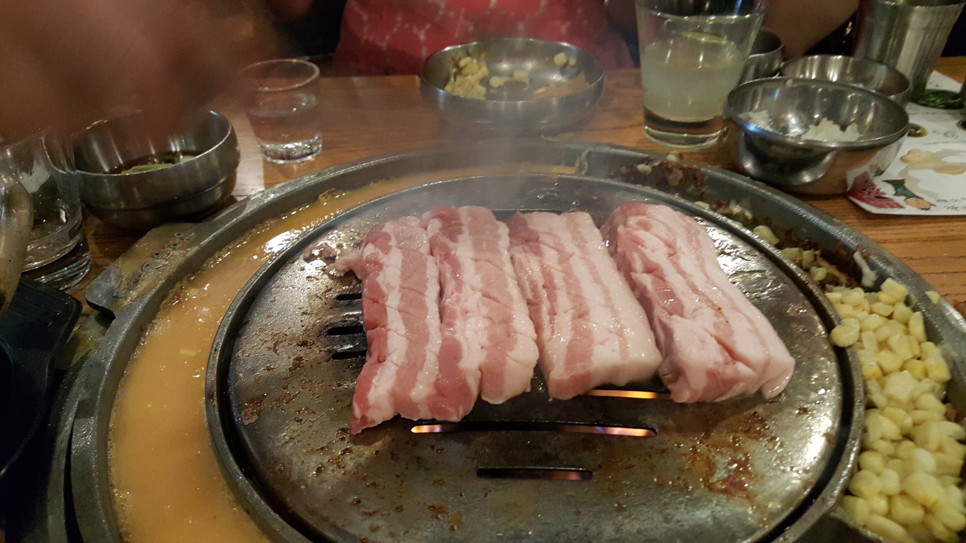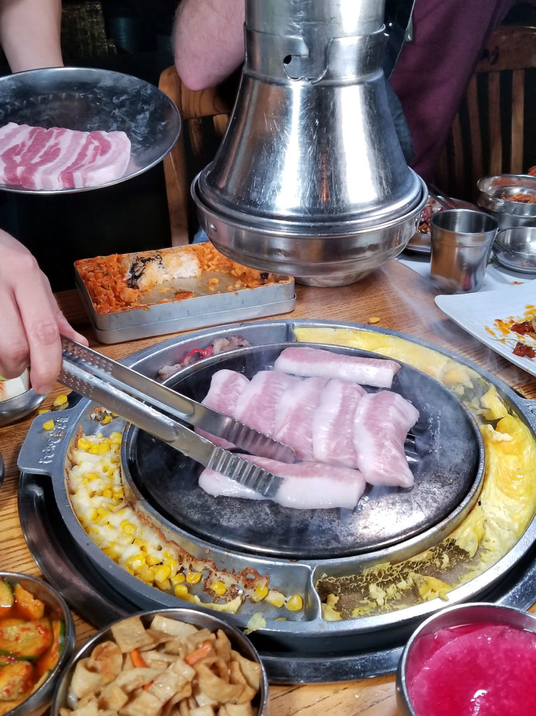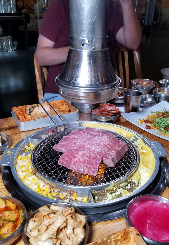 The delicious world of KBBQ has exploded in New York. In the last few years new places have popped up all over, and not just within K-town in NYC. I’ve seen several joints pop up out on Long Island, deep into Suffolk County. Long Island still has no Vietnamese restaurants, and the discovery of pho and banh mi by ordinary white folks started years ago. But there’s something about KBBQ that took hold fast and quick. Perhaps it is the fact that a grill is involved. The invigorating smell and smoky visuals of raw meat hitting a red hot grill just resonate with Americans. Burgers, dogs, steaks… we understand.