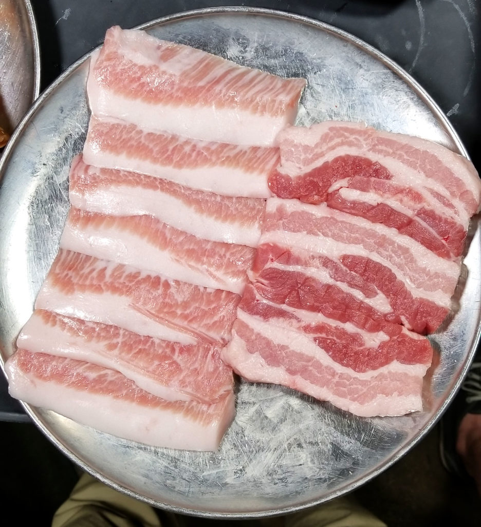 On the pork angle, we also got a large (3 items for $99), which consisted of jowls, thick belly and thinly sliced belly (which came out separately, pre-cooked and dressed in sauce – not for the grill).