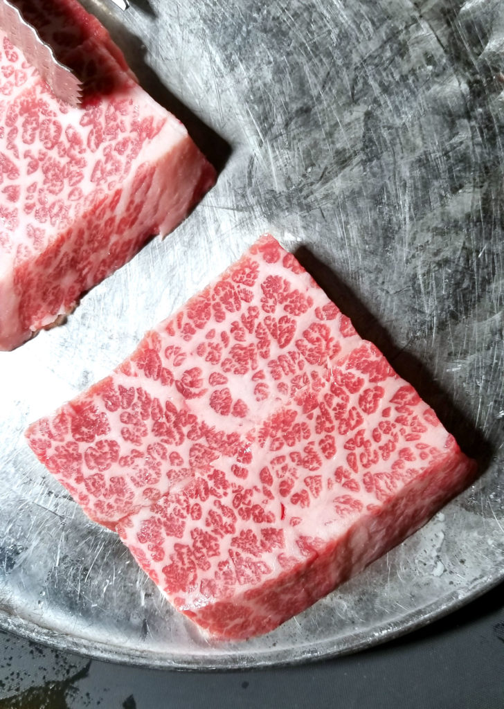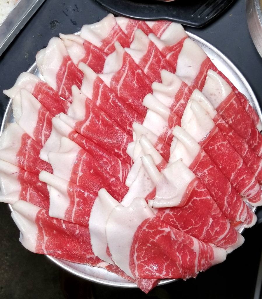 On the beef angle, we had a large order, which comes with three items for $99 (a bit pricey, but I promise it is good). Sliced prime rib eye, boneless short rib, and brisket. Here they are, in that order.