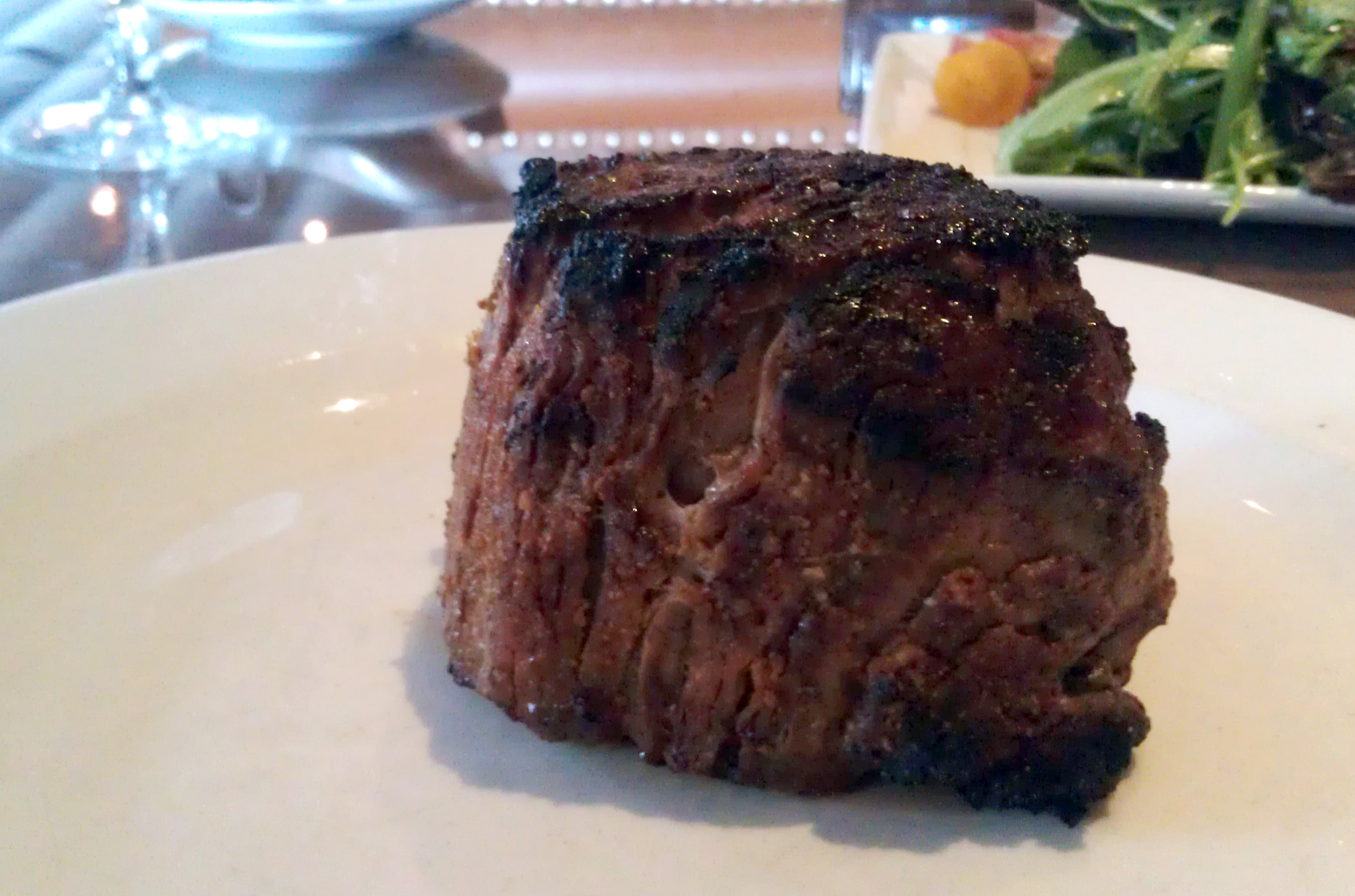 My second trip here, which is what this review is based on, was a much better experience. I had the ribeye, as usual. It was cooked nicely, evenly, and it had a good crust locking in the juices. It was rested well too. It just lacked a little bit of seasoning punch, and there was some inedible fat in parts (on some ribeyes, you can eat every bite – even the fat). Overall a very good steak. Everything here had good flavor as a matter of fact. Nothing was a let down, but, then again, nothing was amazing (except maybe the broccolini). On a third trip (for lunch) I had a 14oz filet, and my wife had a mixed greens salad with string beans and mandarin oranges, with lobster tail on top of a crabmeat guacamole – that was friggin delicious (the guac). My filet was nice and crispy/charred on the outside, and perfectly medium rare on the inside. The edges did get a little dry, however, since it was such a thick cut of meat. I found that dipping into the steak sauce on occasion was a good way to keep the moisture level high.