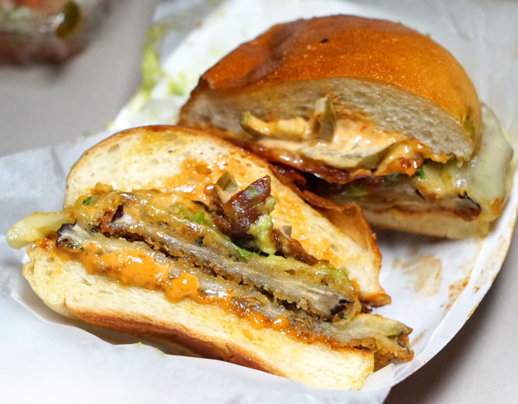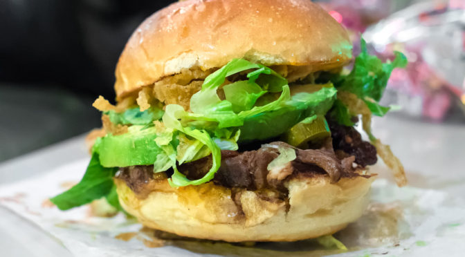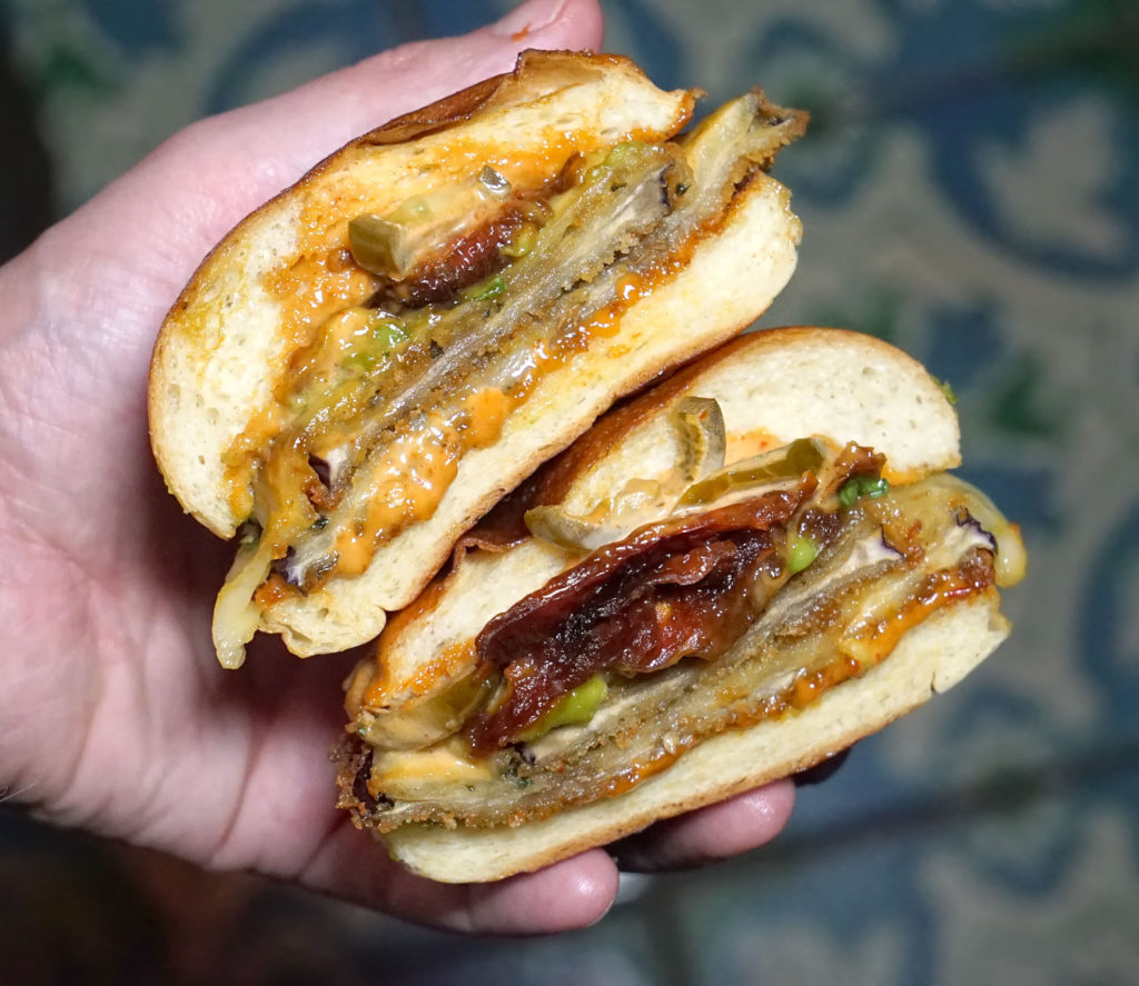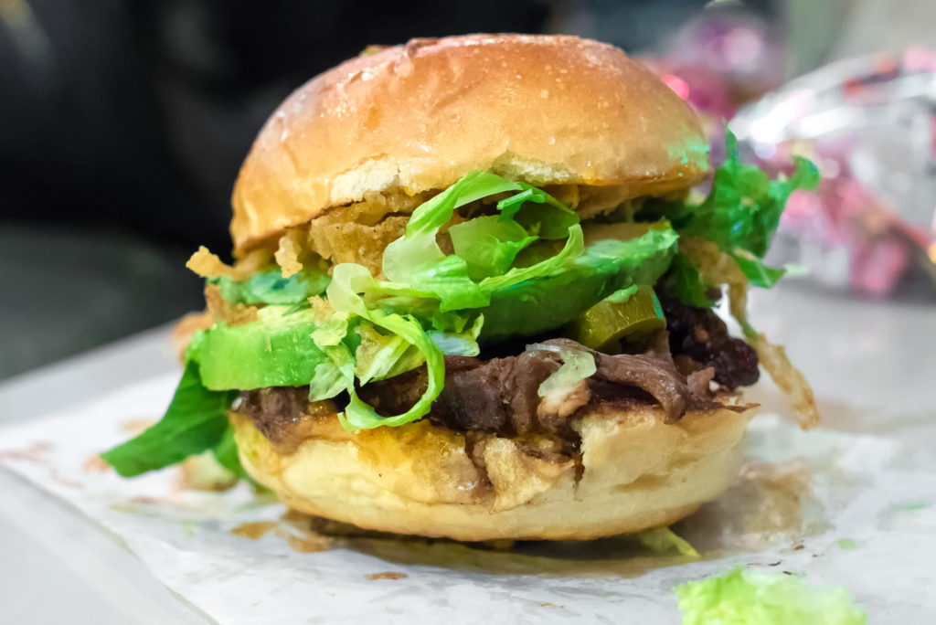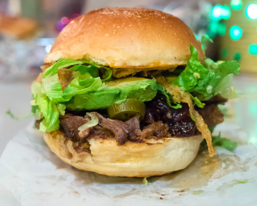This, too, is topped with avocado. There’s also lettuce, fried onion and jalapeno peppers on there as well.