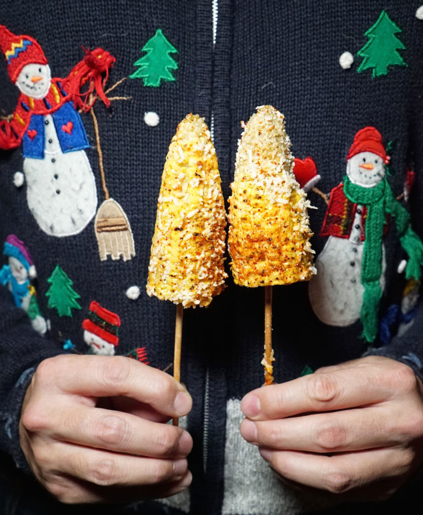 And he was even sporting some nice Mexican corn there, which looked like yellow Christmas trees covered with cheese-snow.