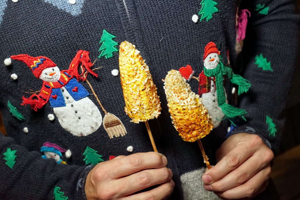 Everyone slapped on hats and ugly sweaters to crank up the “festive” levels. This one, worn by @StuffBenEats, was by far the clear winner: