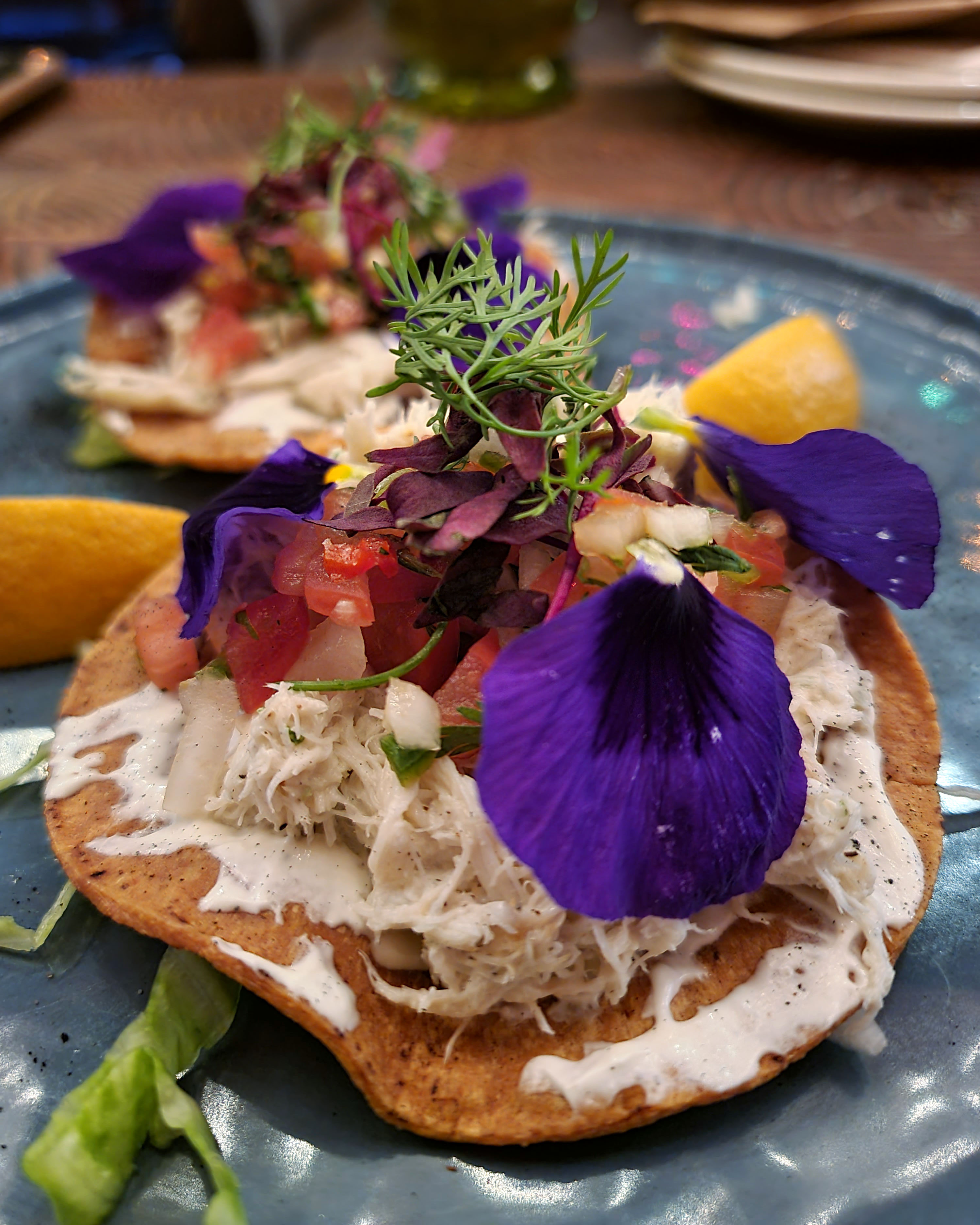 We started with the carb meat tostada, which was our favorite item of the meal.