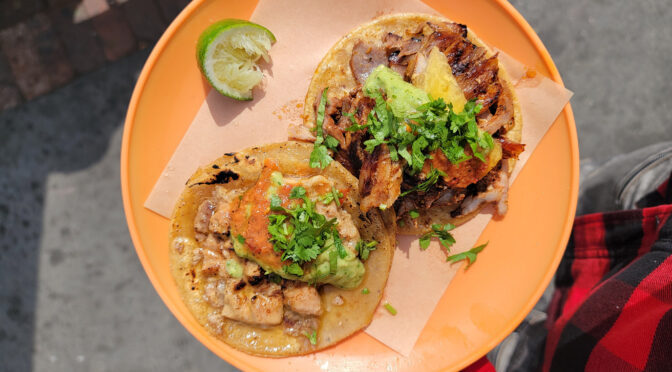 I ate two tacos here on a really quick pit stop while riding with some ebike nerd friends. I tried the tripe, which was buttery and almost tasted like foie gras, and the al pastor. The al pastor was probably the best of its kind that I’ve ever had. Nice grilled pineapple, really tasty and generous amount of flavorful and juicy meat, and a little bit of crisp skin.