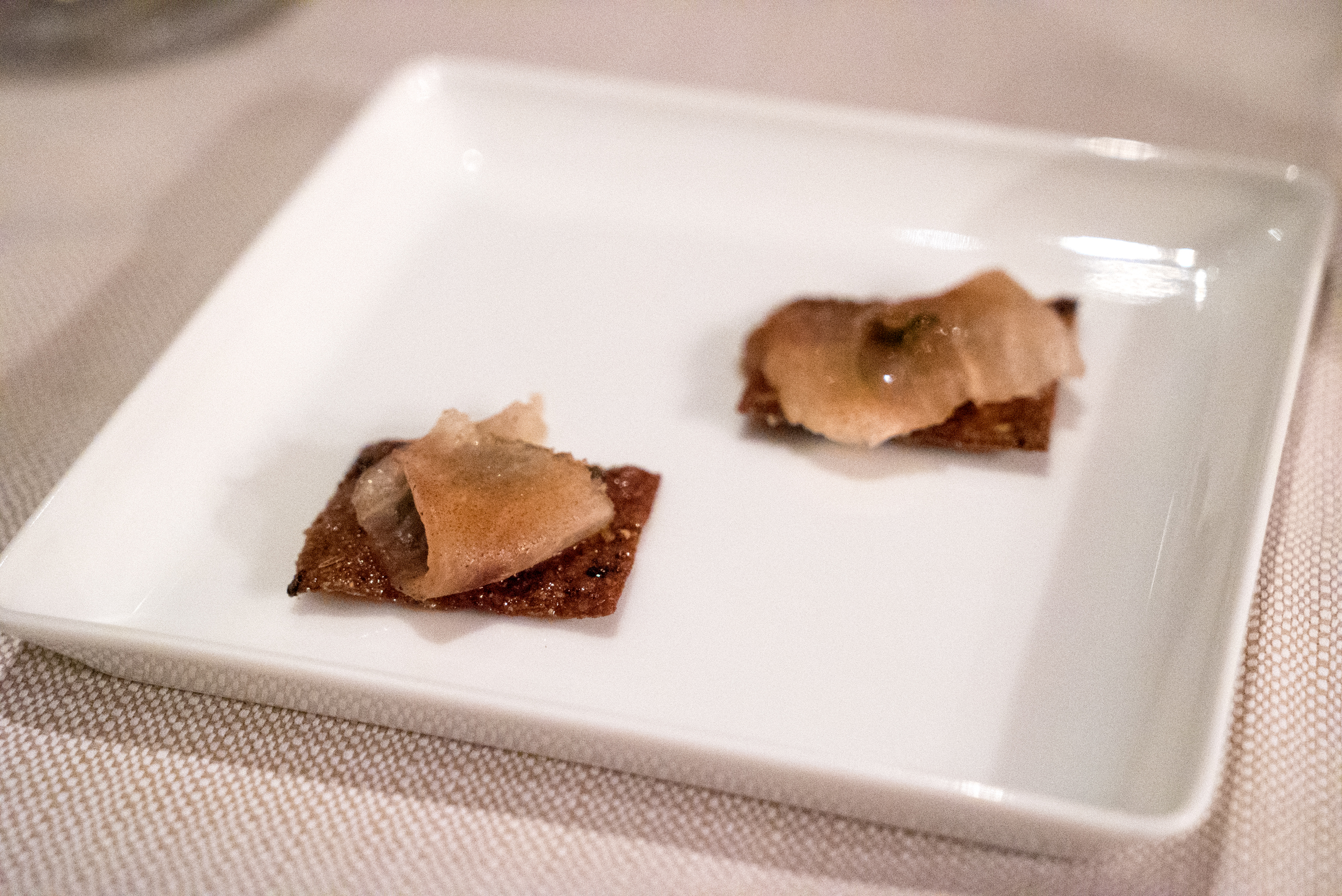 First was an amuse of smoked fish on a sesame cracker. This was a nice bite: