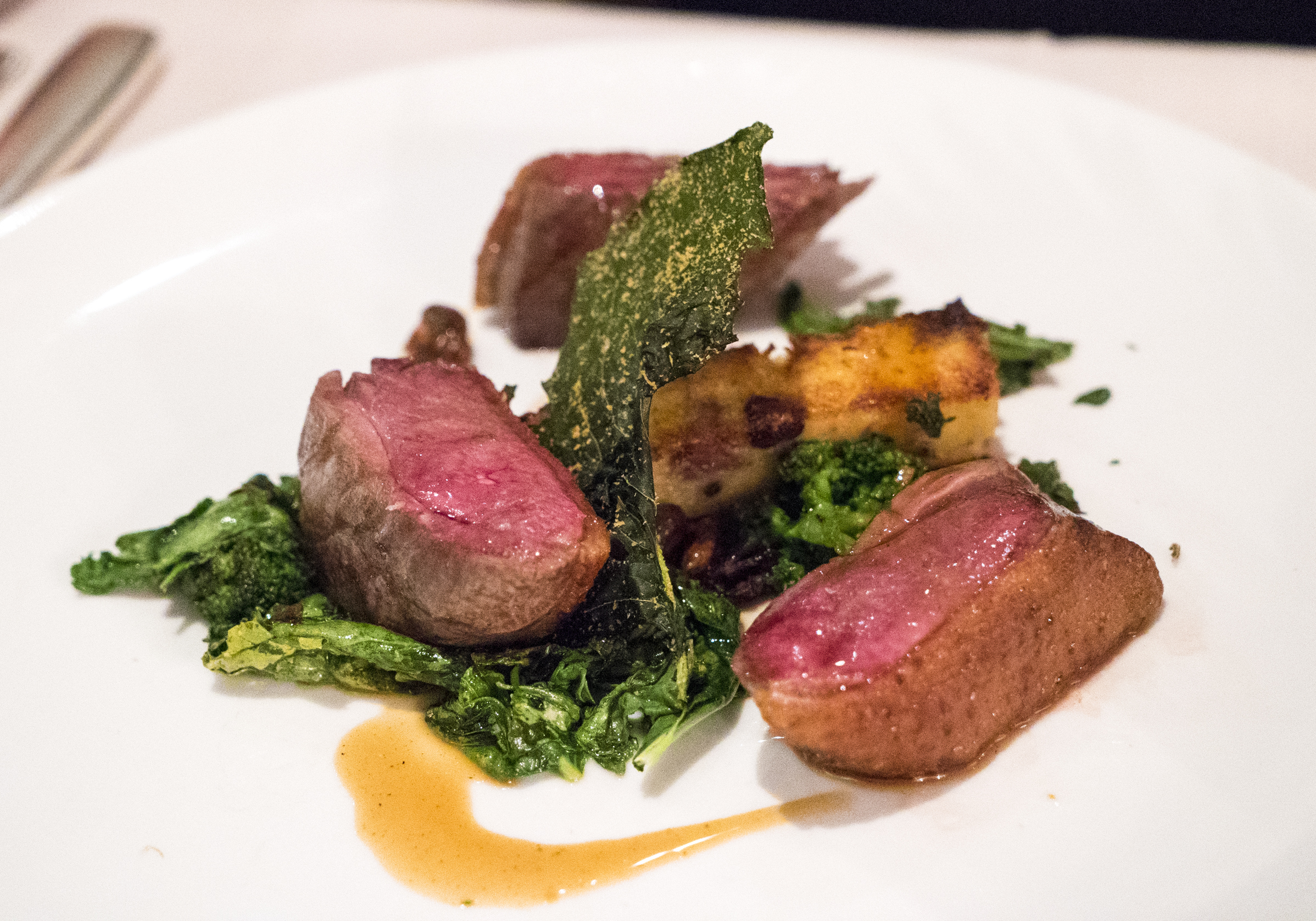Not sure if you can see it but the cilantro leaf baked into the wafer cracker thing was pretty impressive and beautiful. The lamb was cooked for something like six hours and became incredibly tender and remained juicy. Great dish.