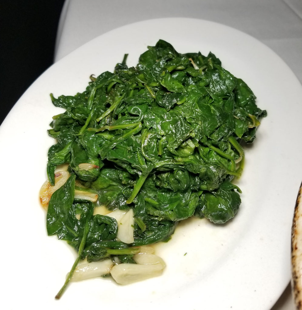 The star of the apps were the oysters Rockefeller and the clams casino. These usually come six to an order, but the chef did us a solid and gave us three of each so we could try both preparations.
