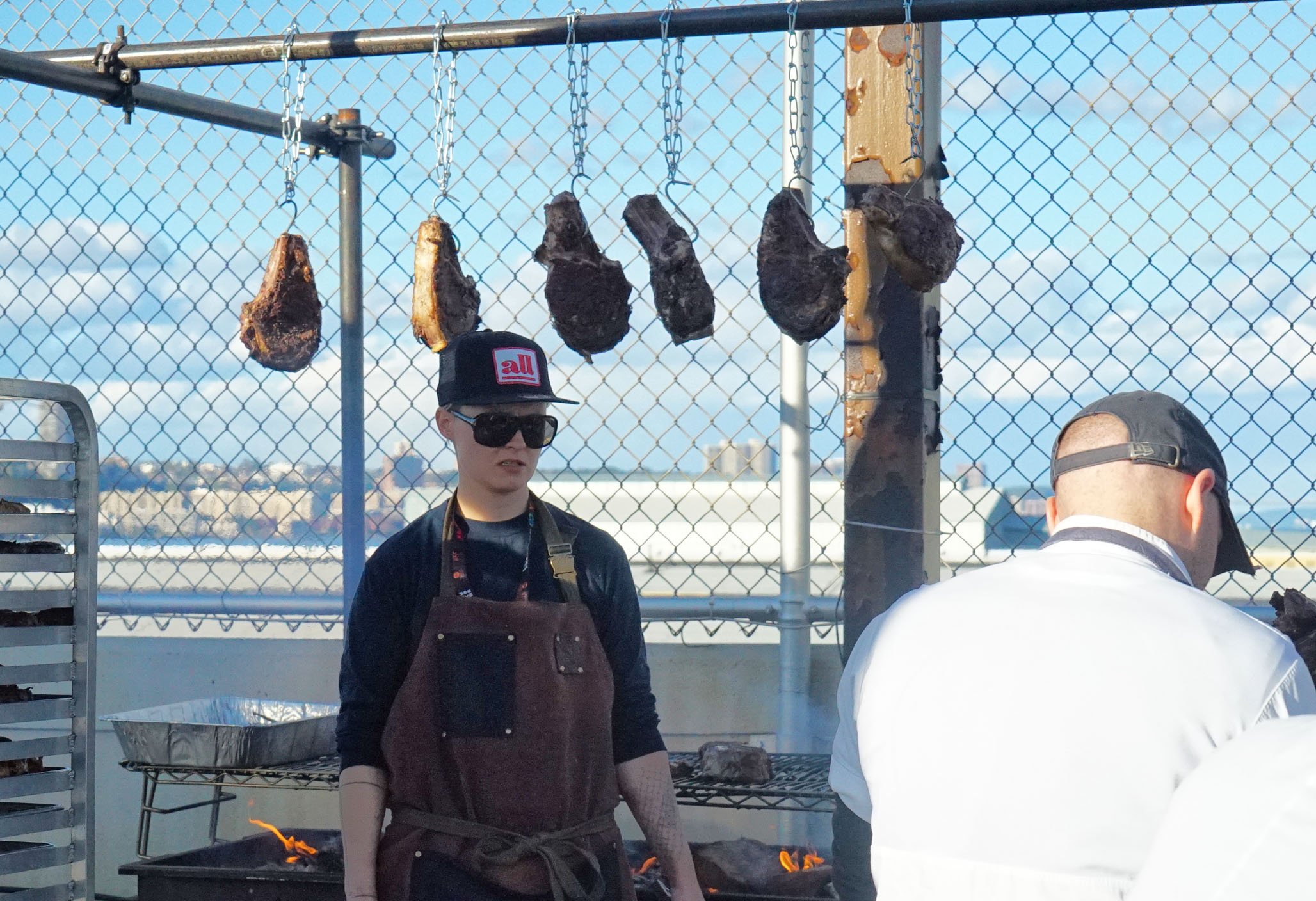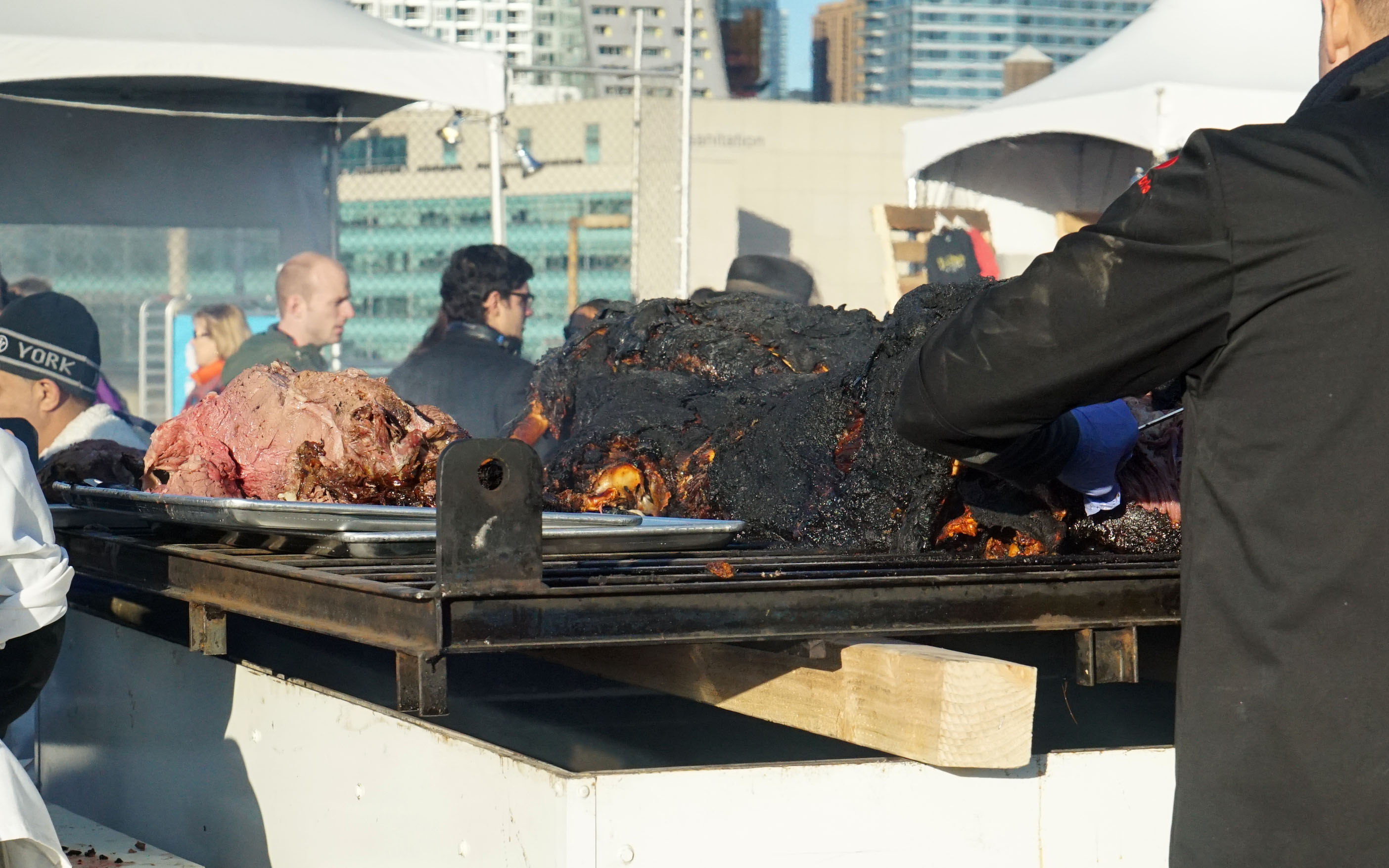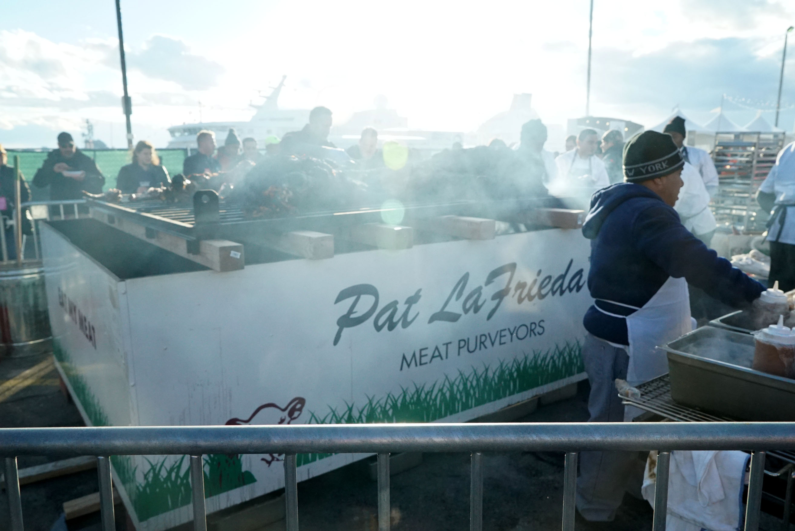 Upon walking out onto Pier 92, I was blasted with the invigorating scent of roasting meat, and bathed in the billowing bovine smoke that was coming off of the giant Pat LaFrieda fire pit. Heavenly rays of sunlight shone down through the smoke and kissed the meat, as if God himself was proclaiming this to be a righteous undertaking.