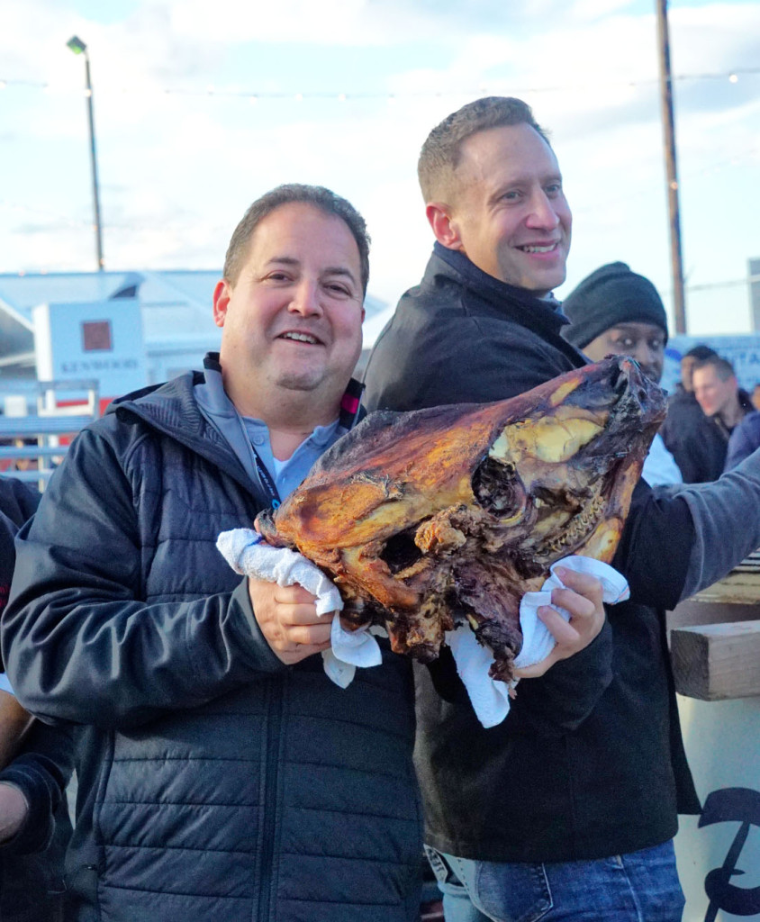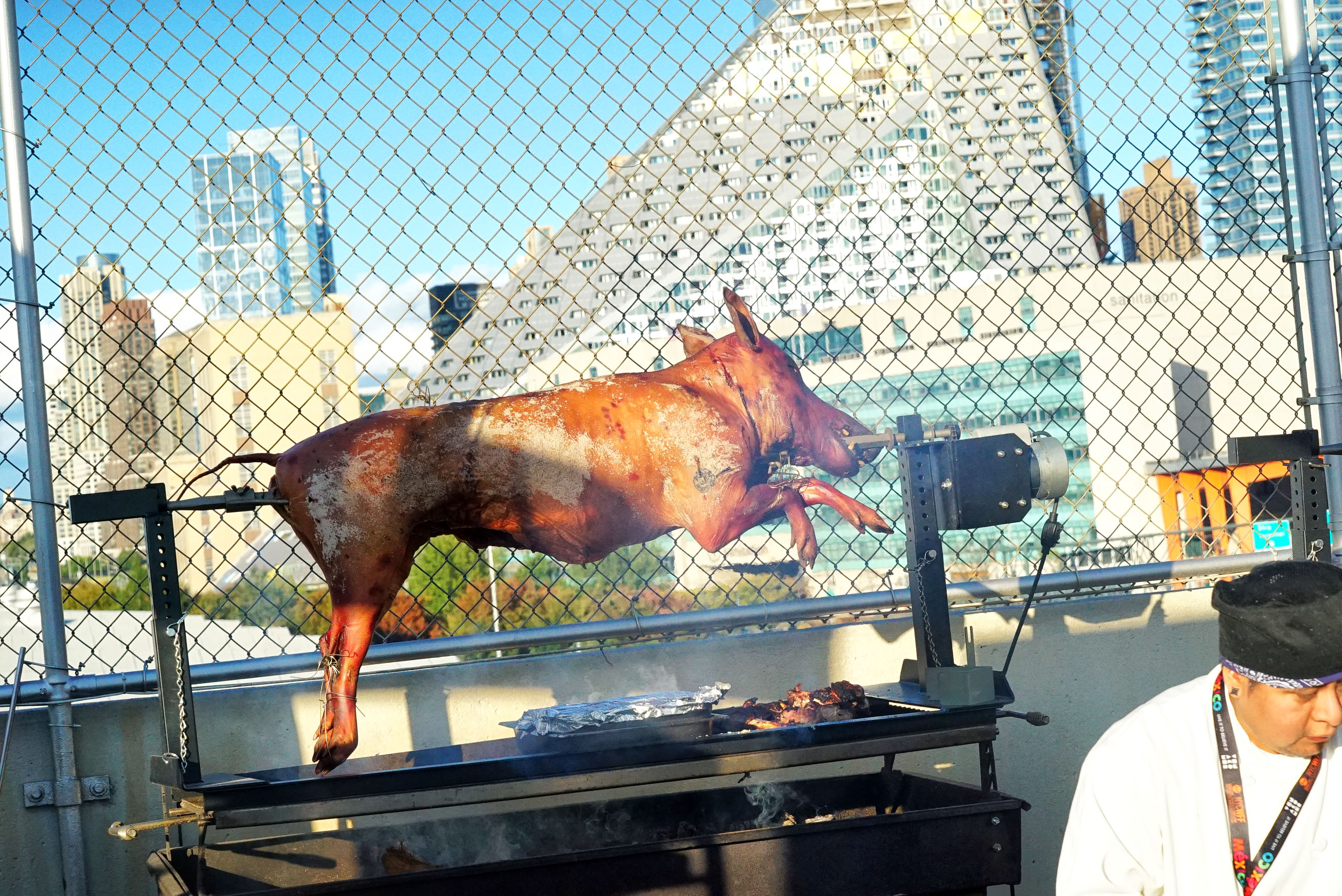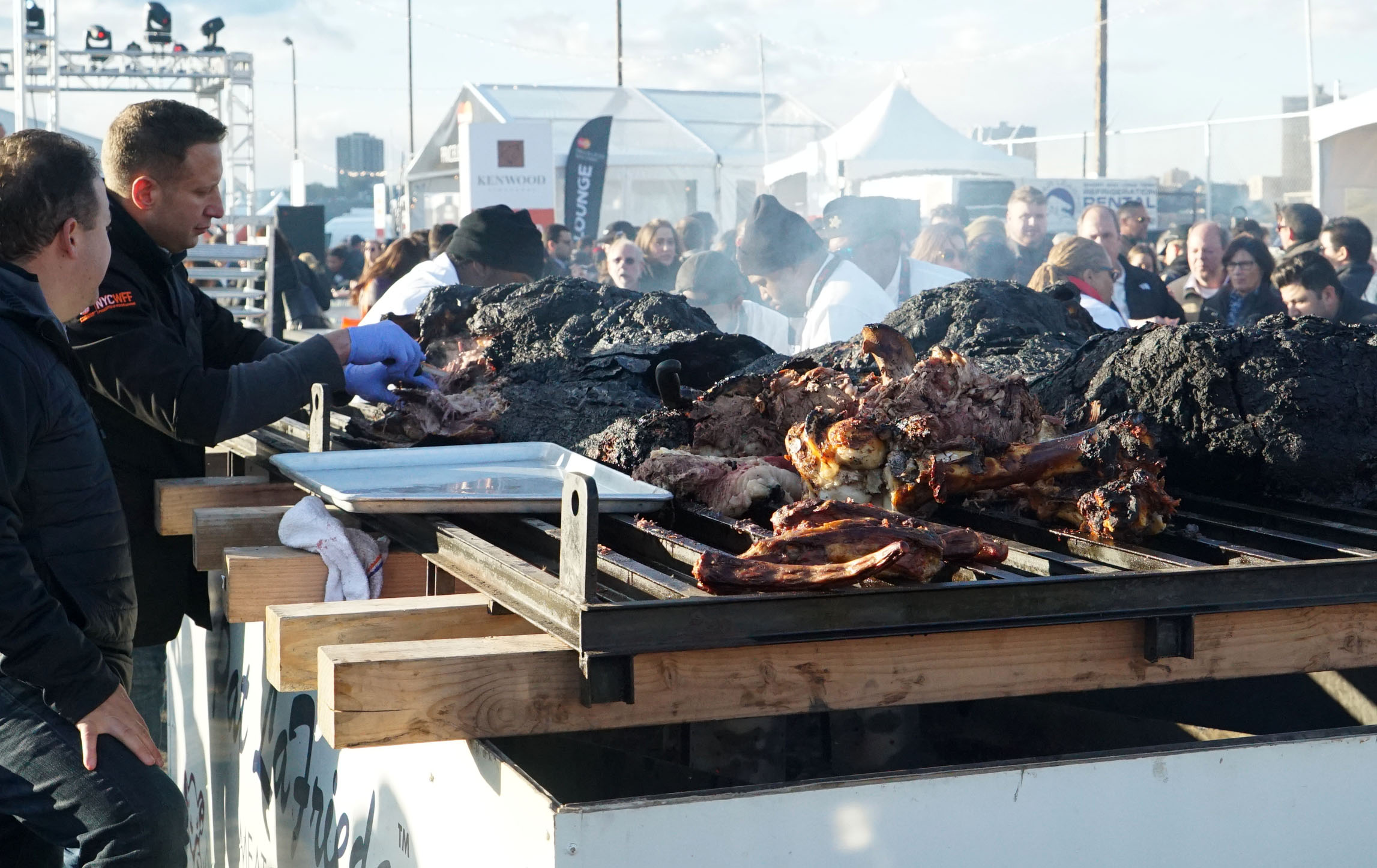 Upon walking out onto Pier 92, I was blasted with the invigorating scent of roasting meat, and bathed in the billowing bovine smoke that was coming off of the giant Pat LaFrieda fire pit. Heavenly rays of sunlight shone down through the smoke and kissed the meat, as if God himself was proclaiming this to be a righteous undertaking.