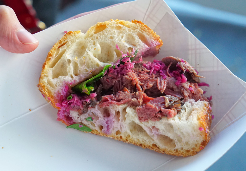 My favorite of the day, just slightly ahead of that pork belly, was this hot beef tongue sandwich by Harry & Ida’s Meat & Supply Company. The meat was so soft, unlike what you might expect from common tongue preparations that can sometimes be rushed, or have the consistency of deli meat.
