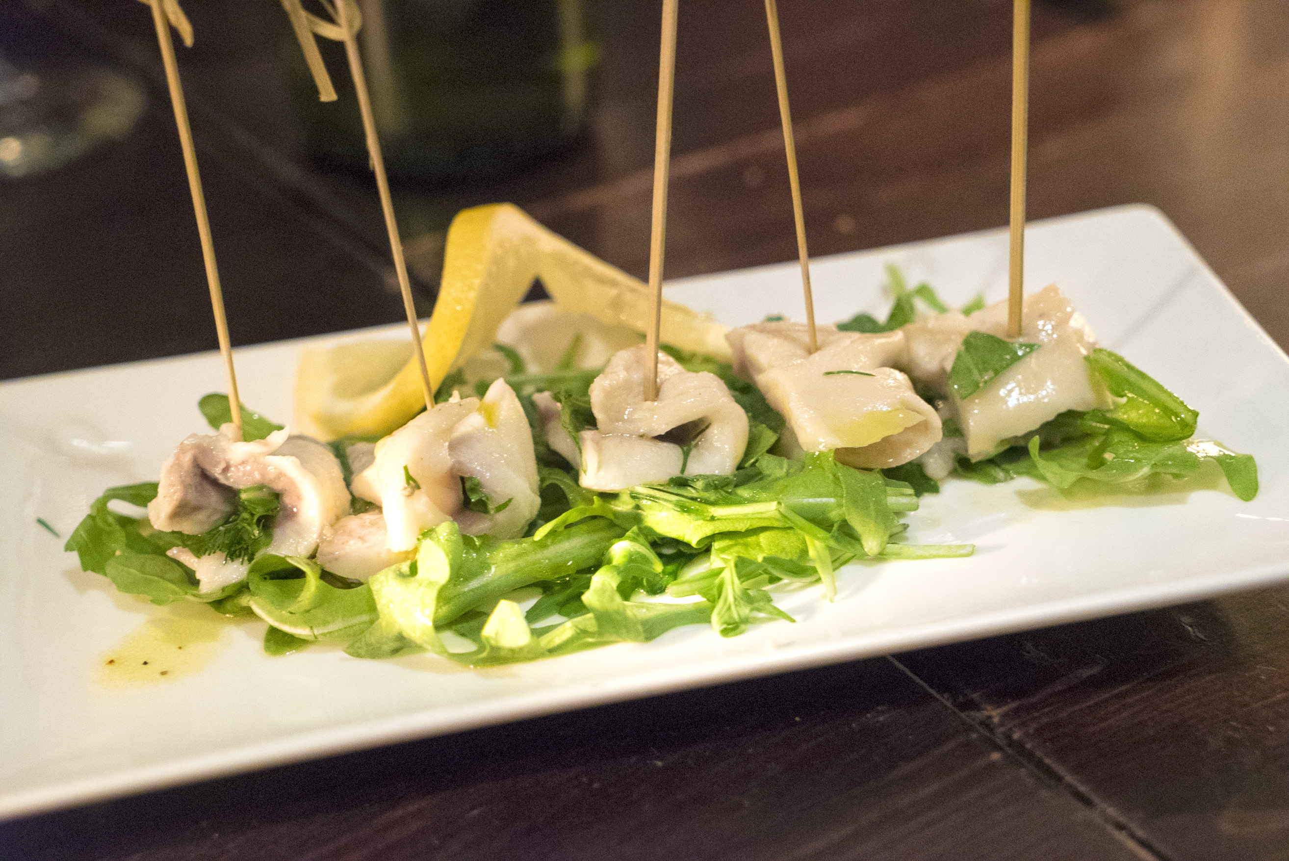 The menu features lots of tapas and mezzes, even some pizza, in addition to a smaller selection of entrees. Here’s the tasting menu we had for the press dinner, along with the wines that were paired with each course: